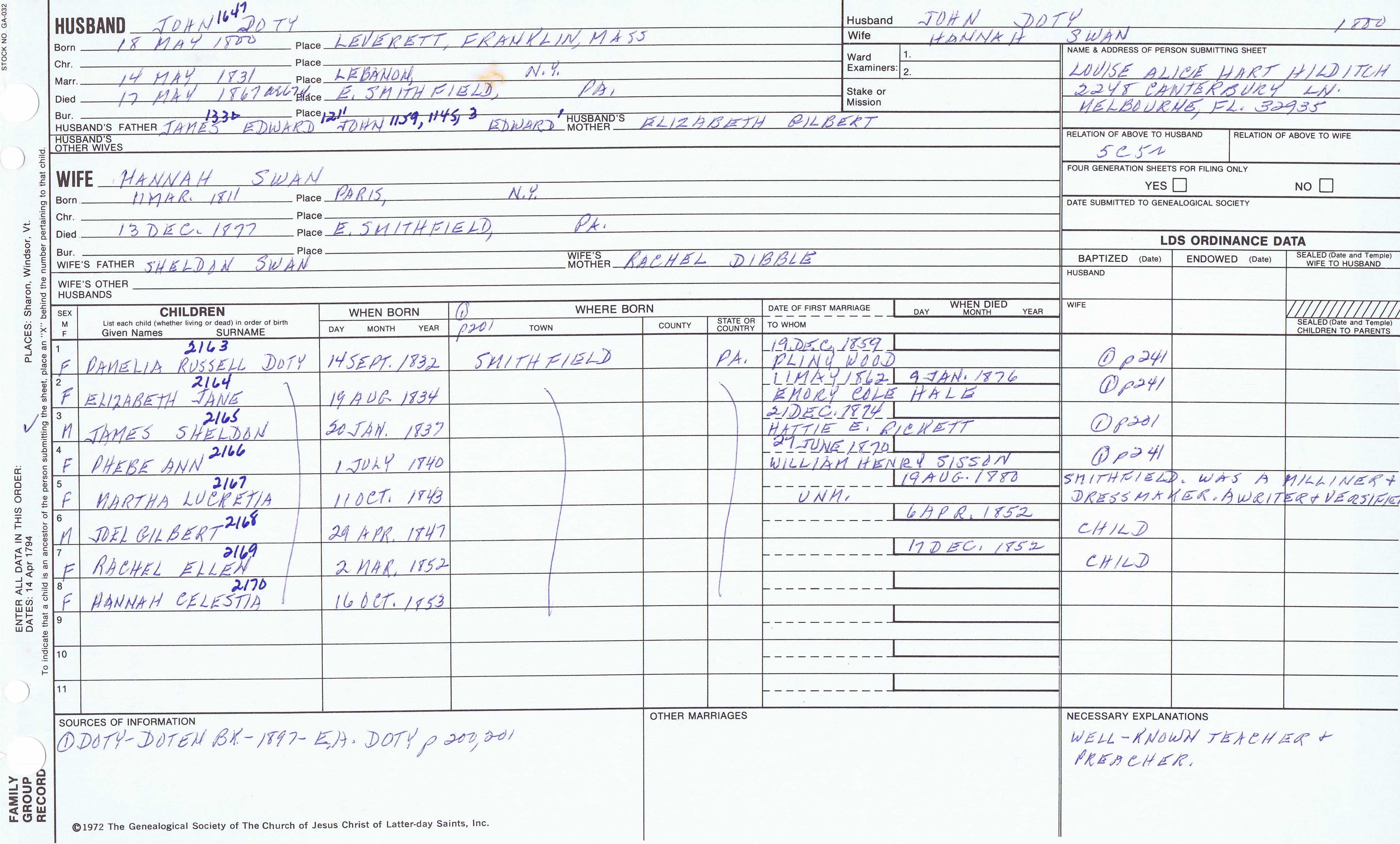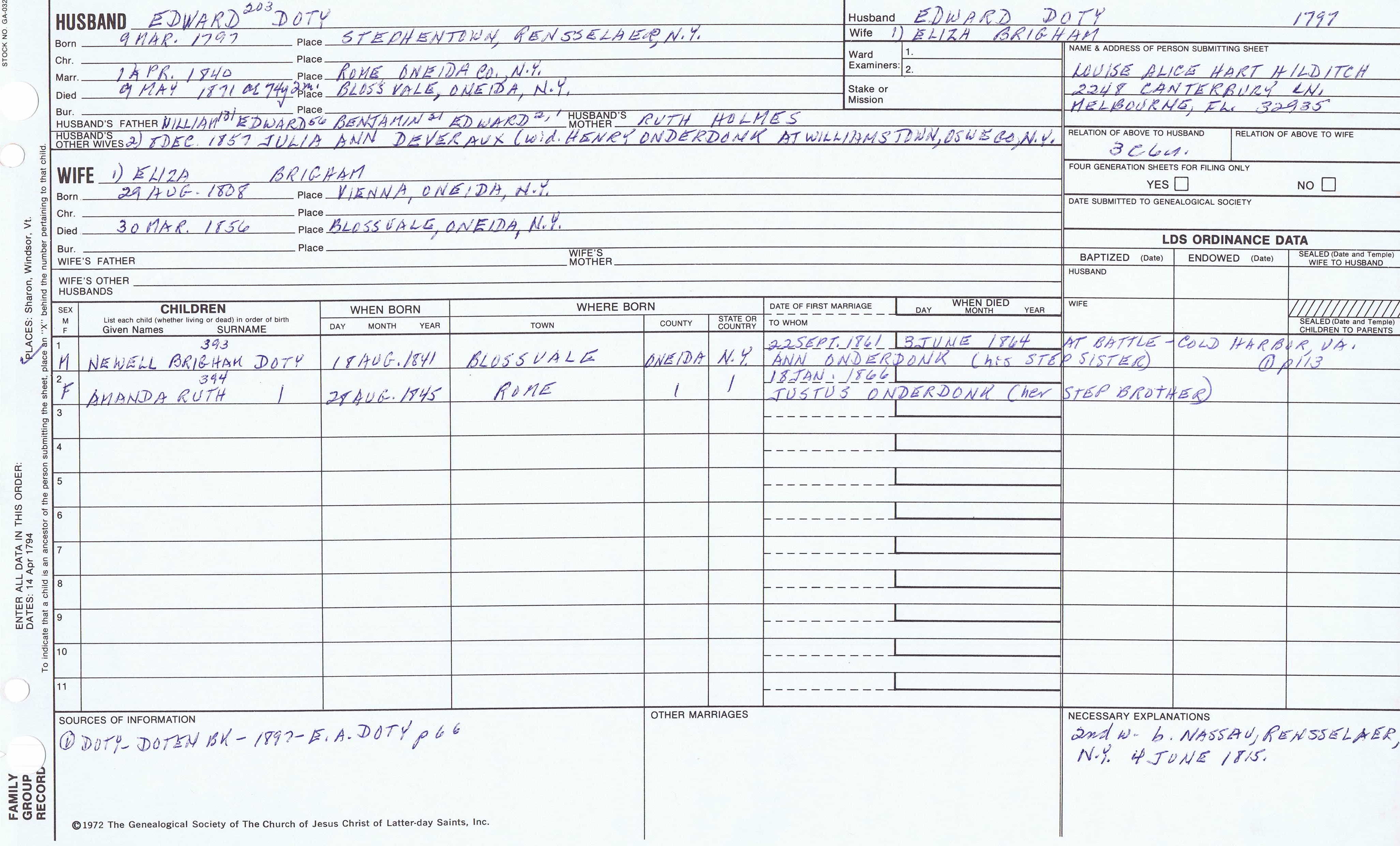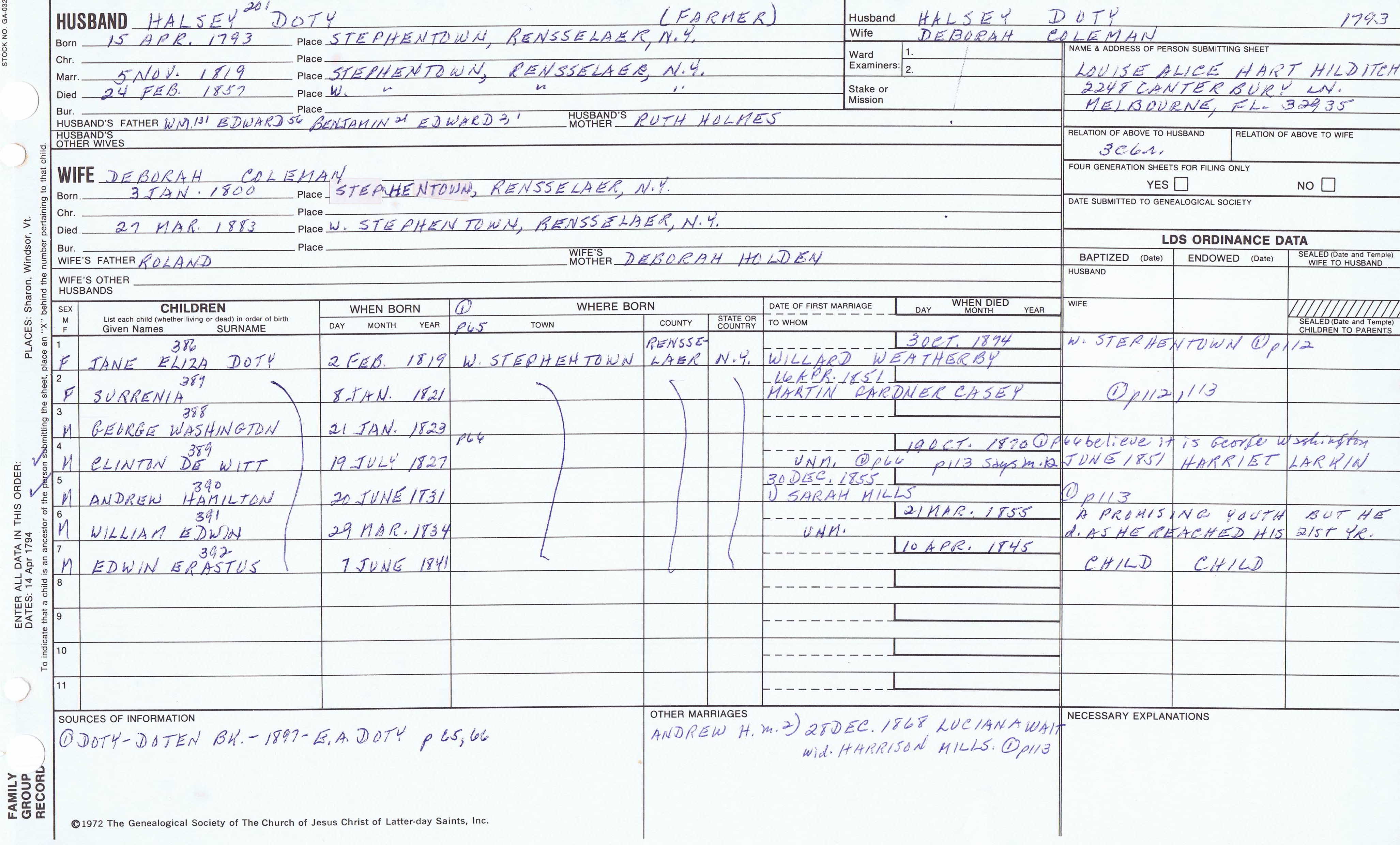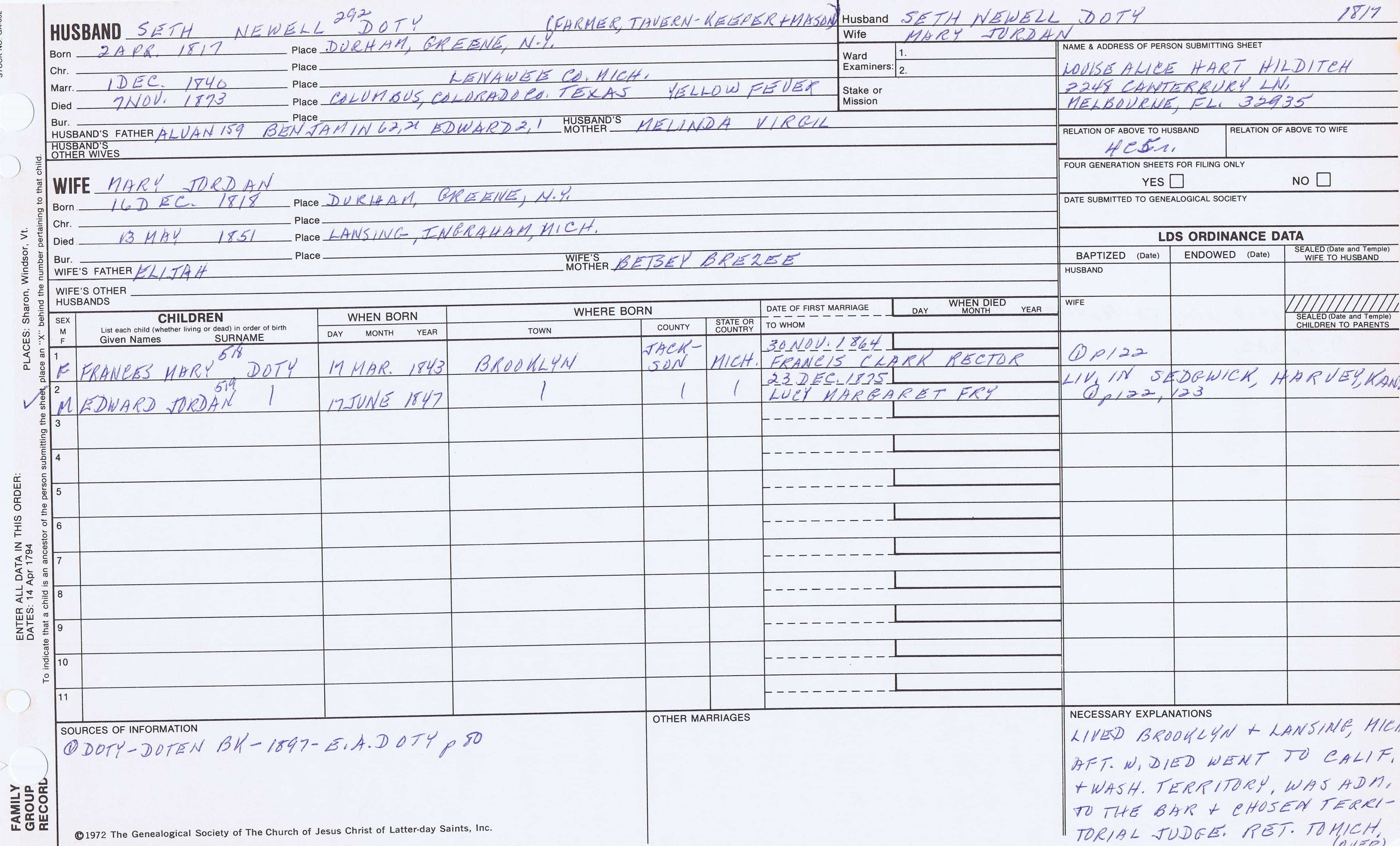 Seth Newell Doty (1817) back