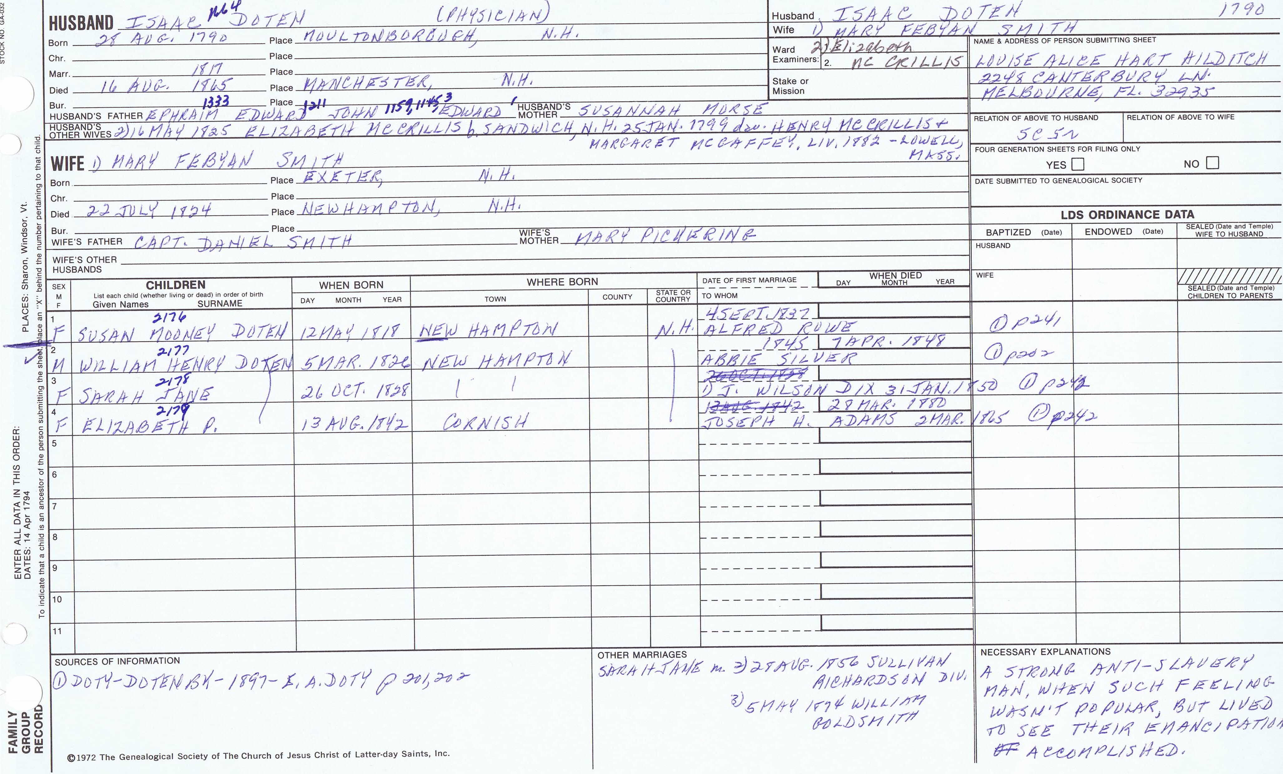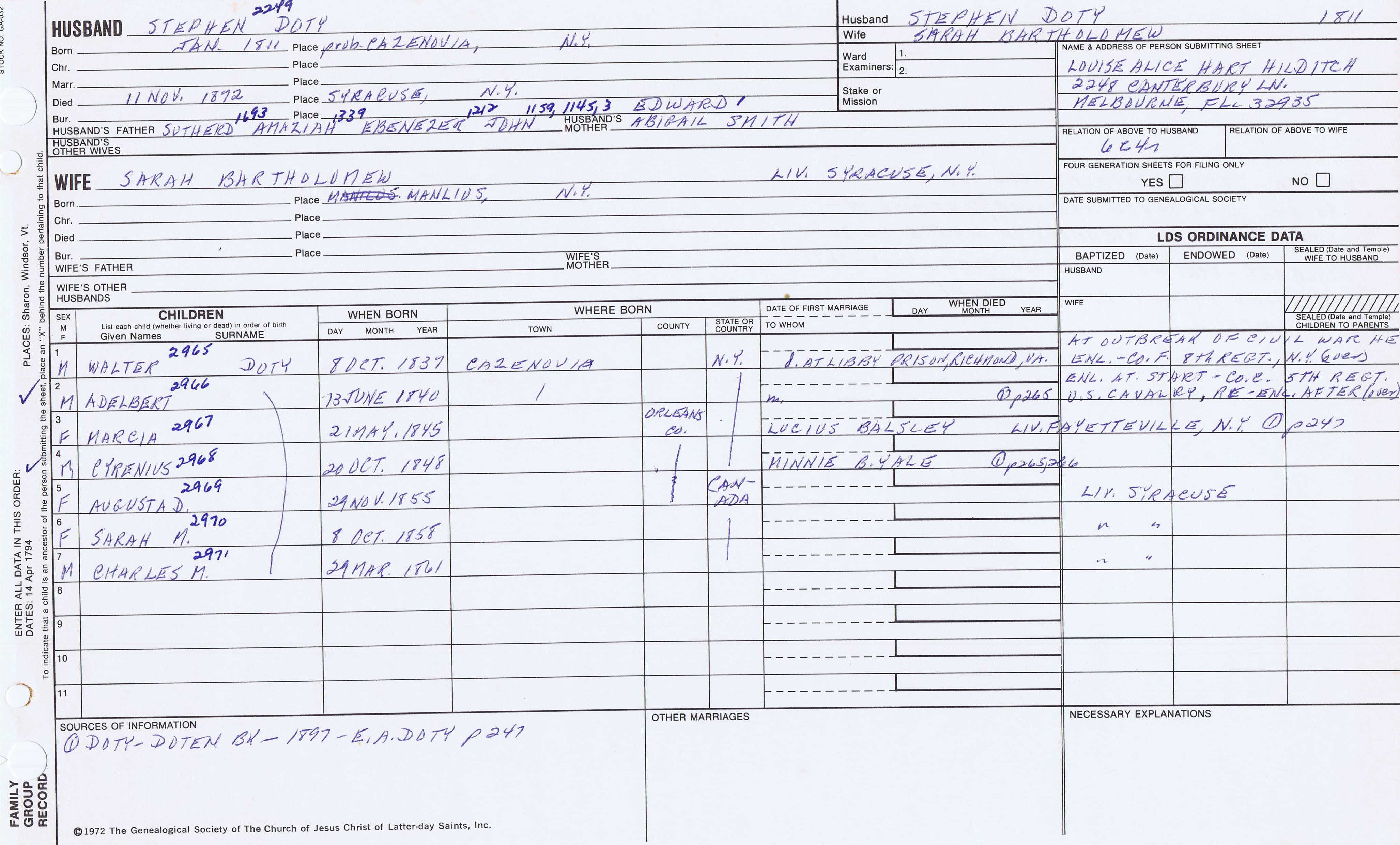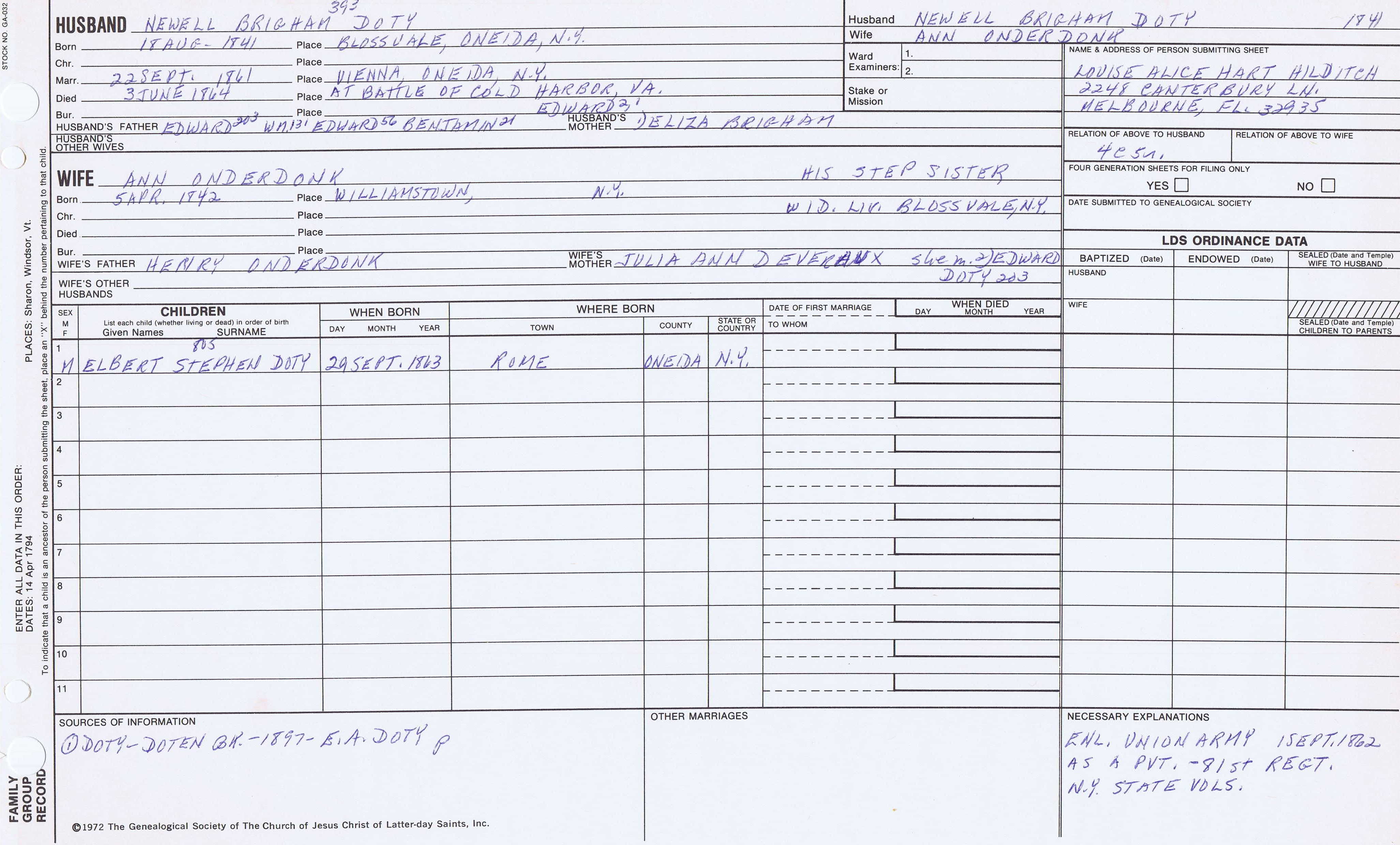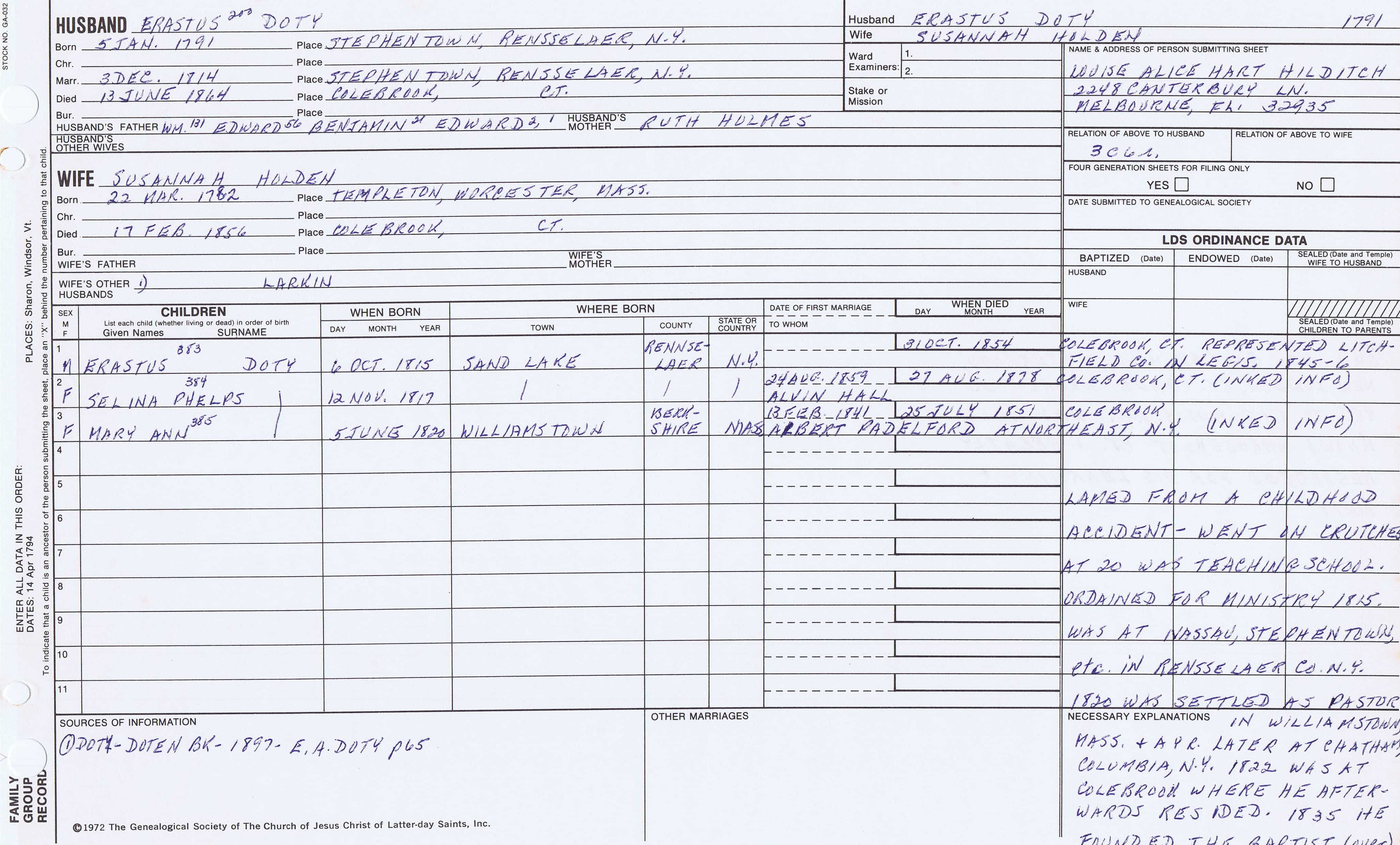 Seth Newell Doty (1817) back