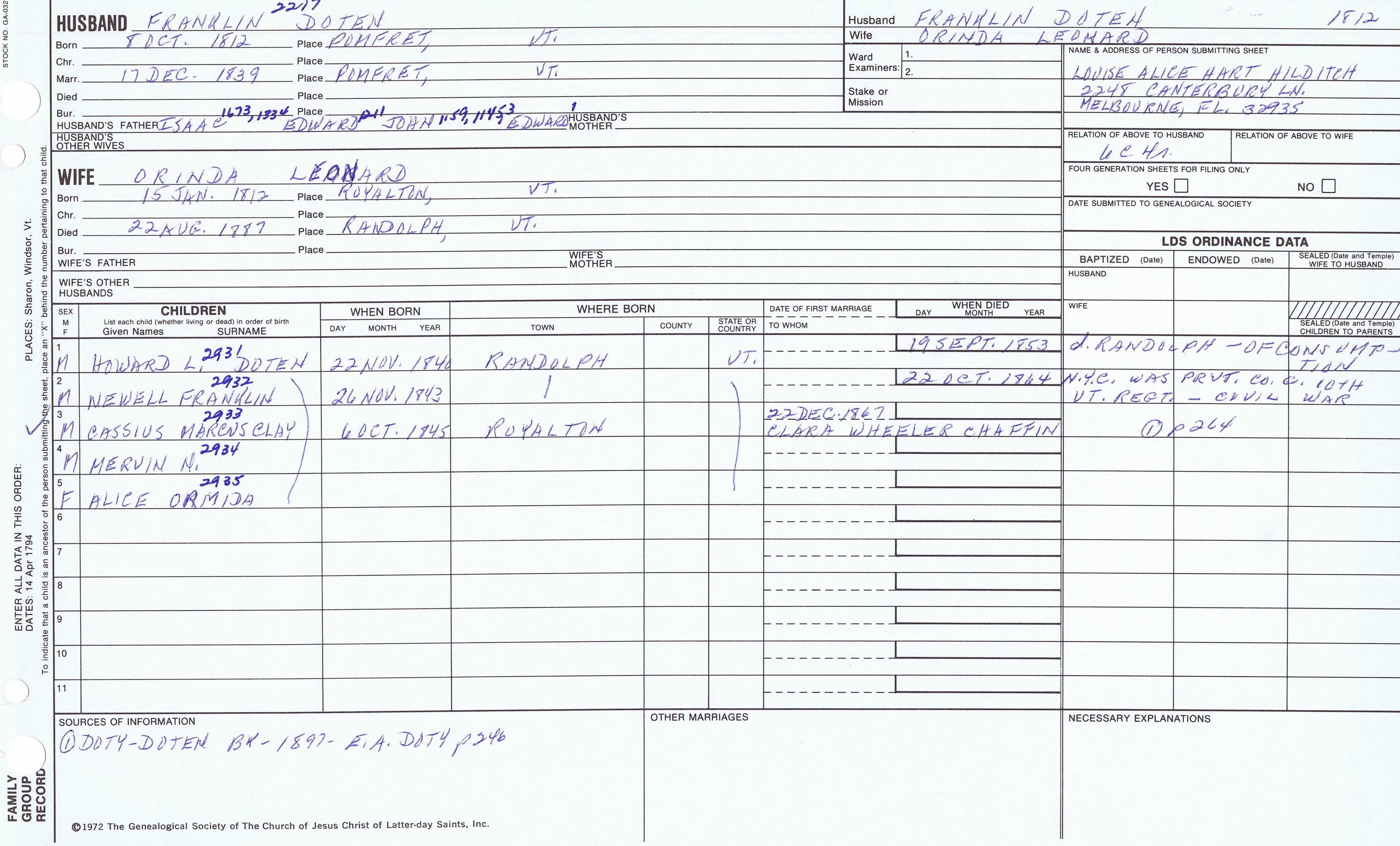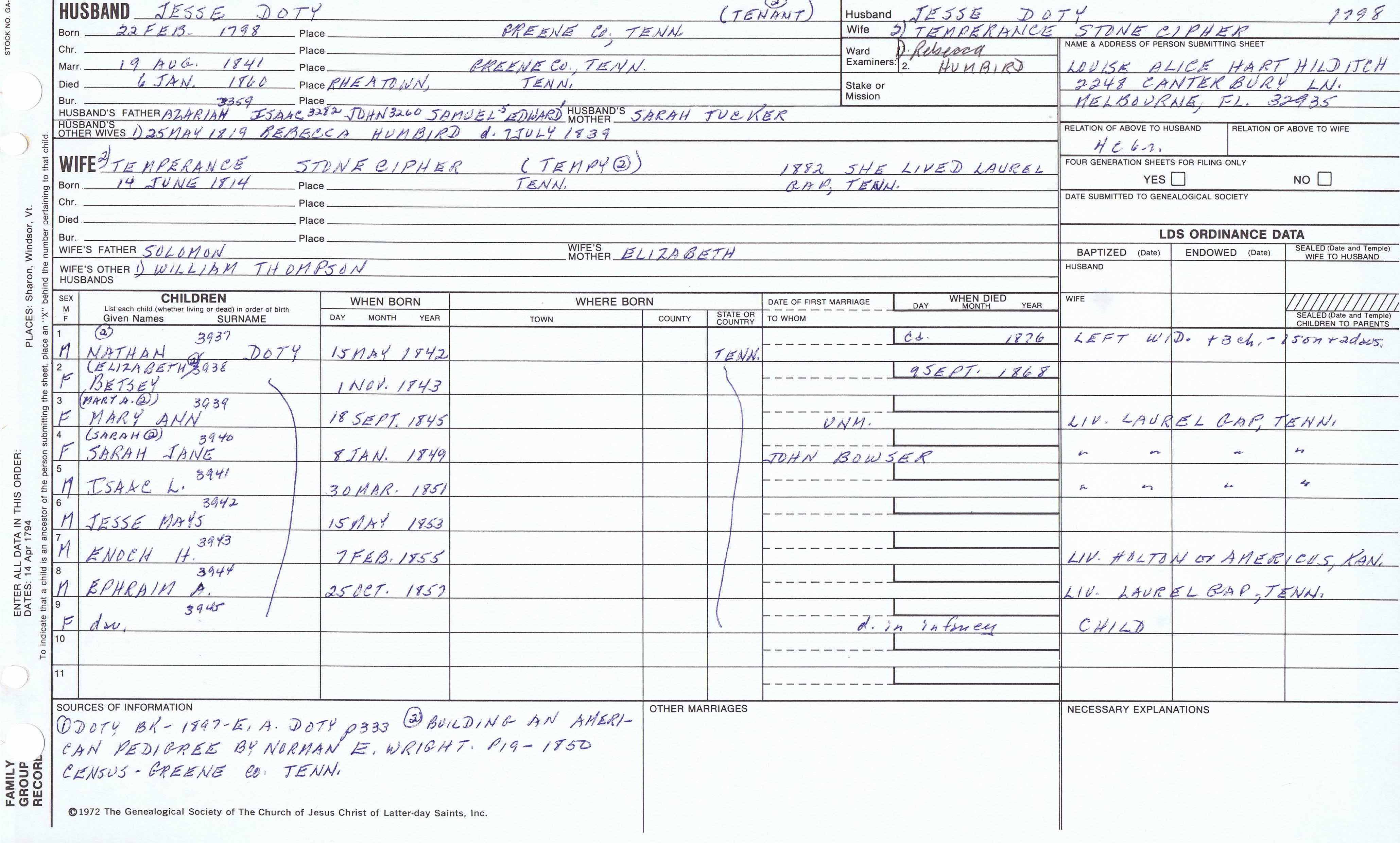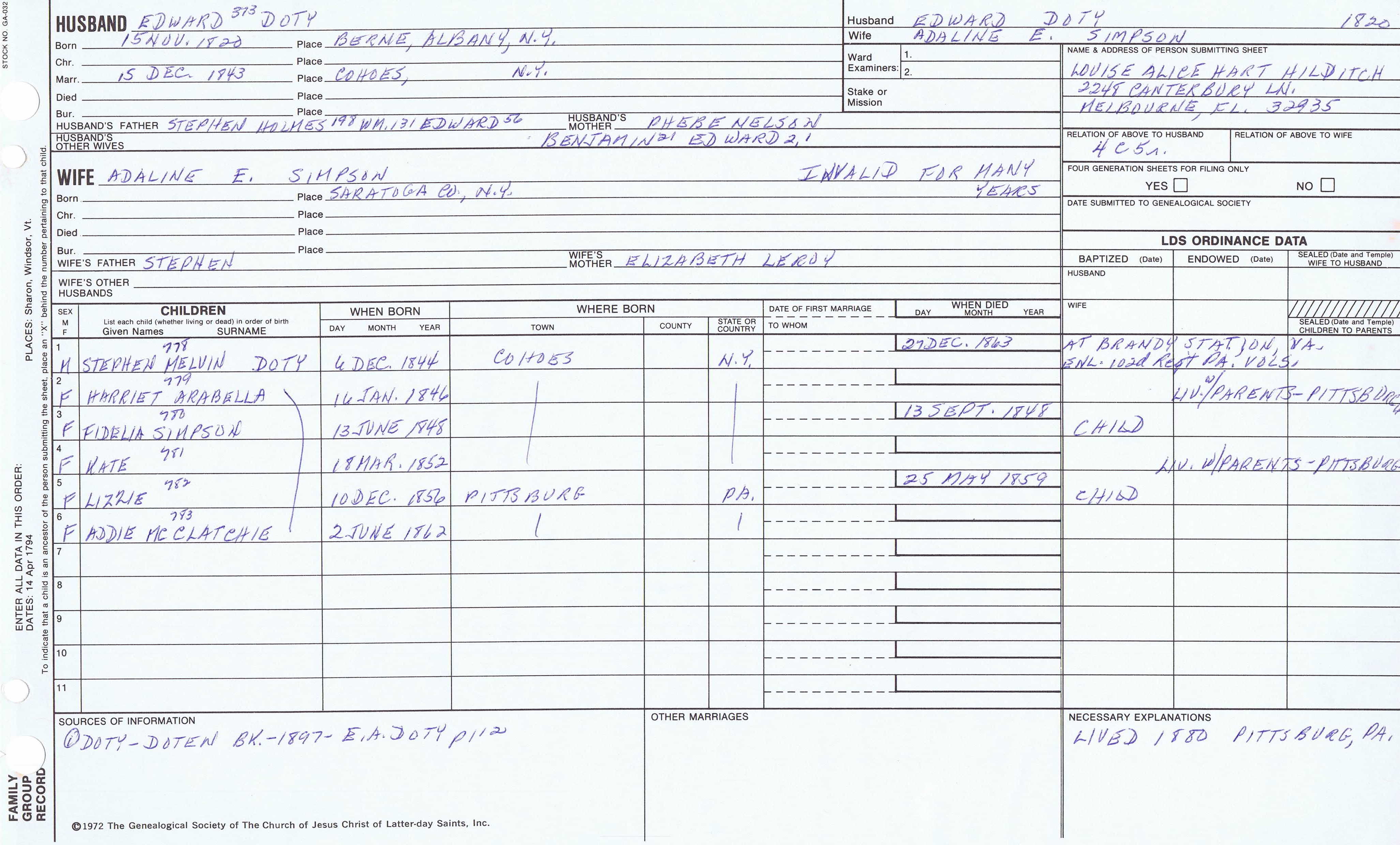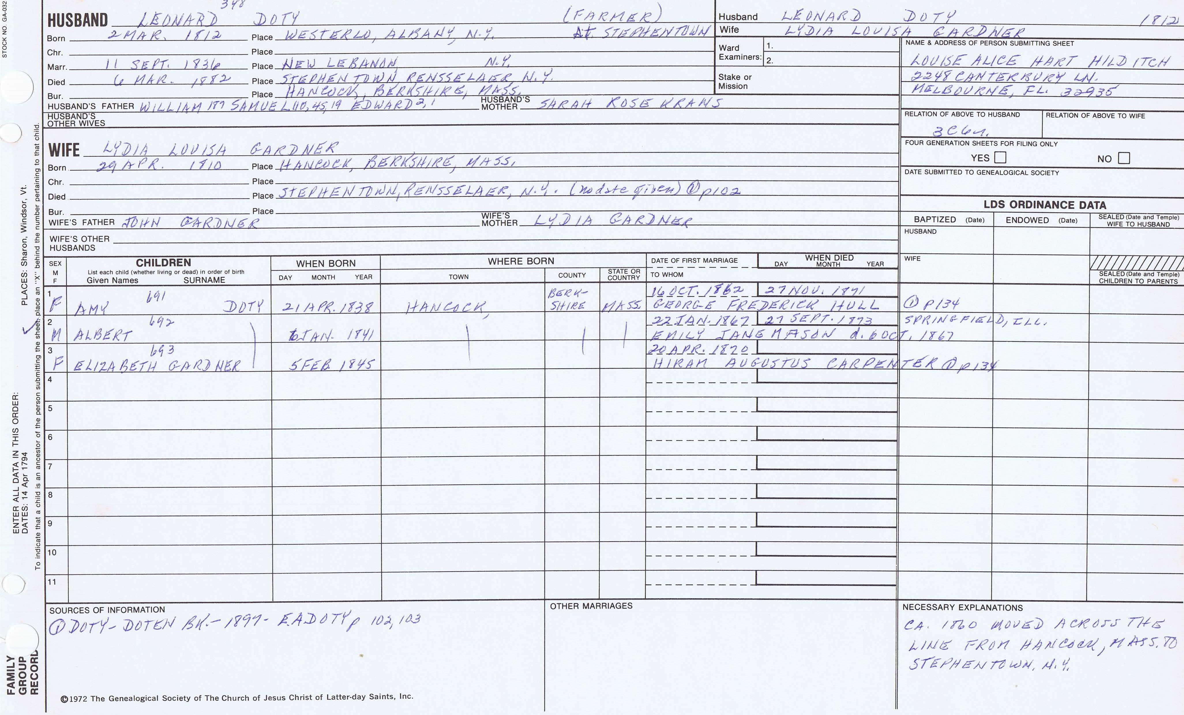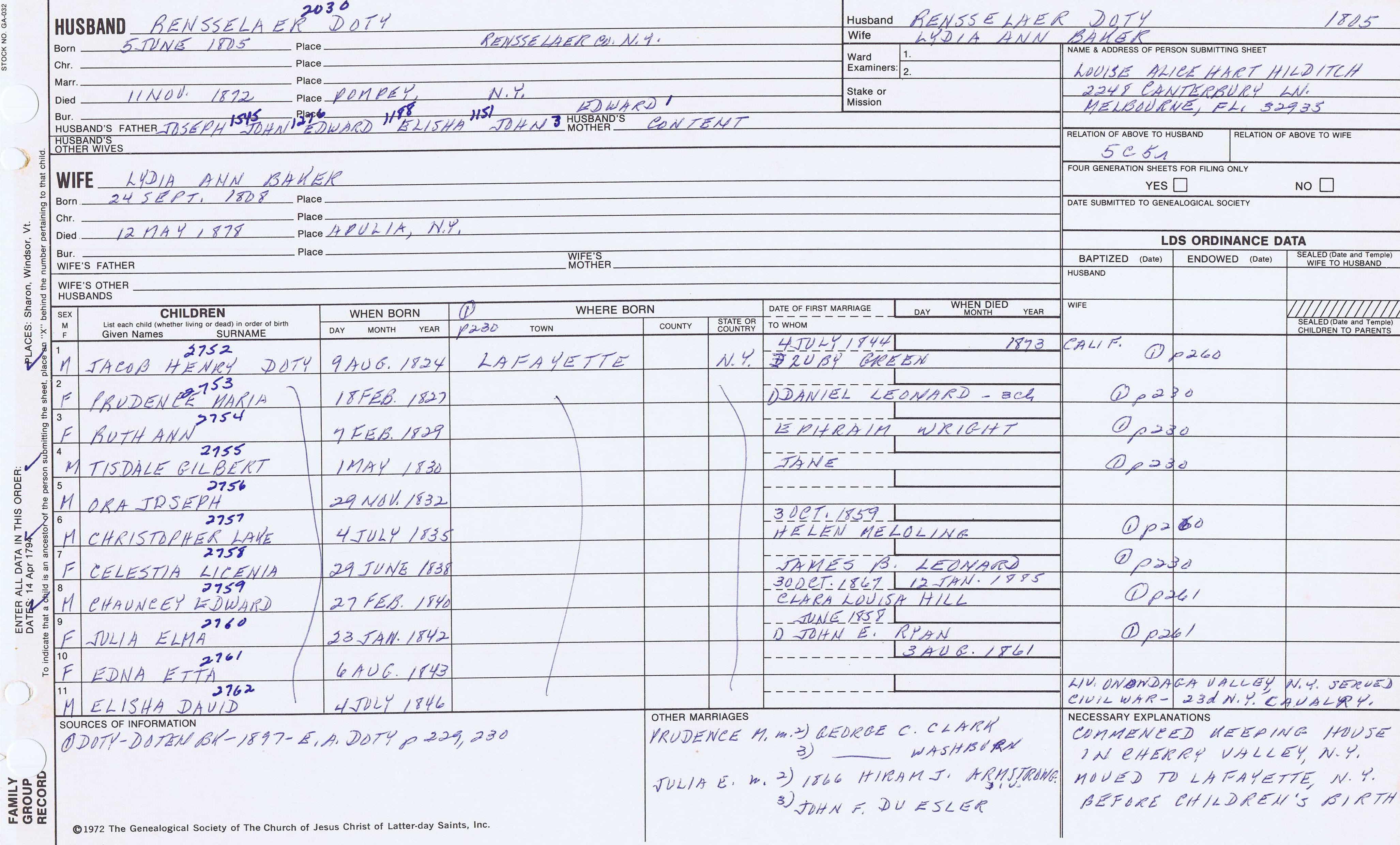 Seth Newell Doty (1817) back