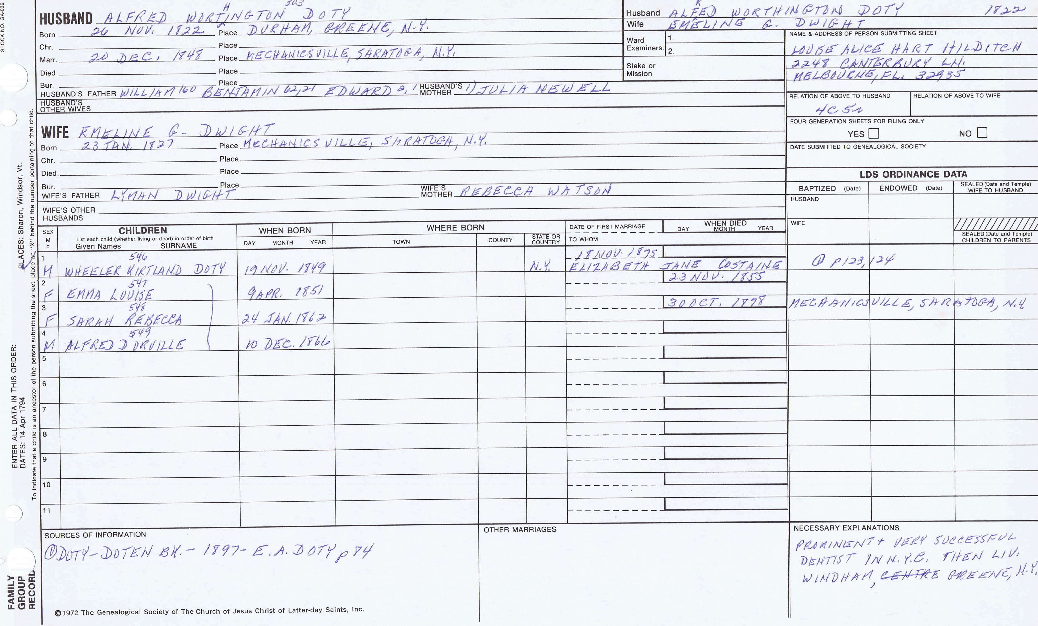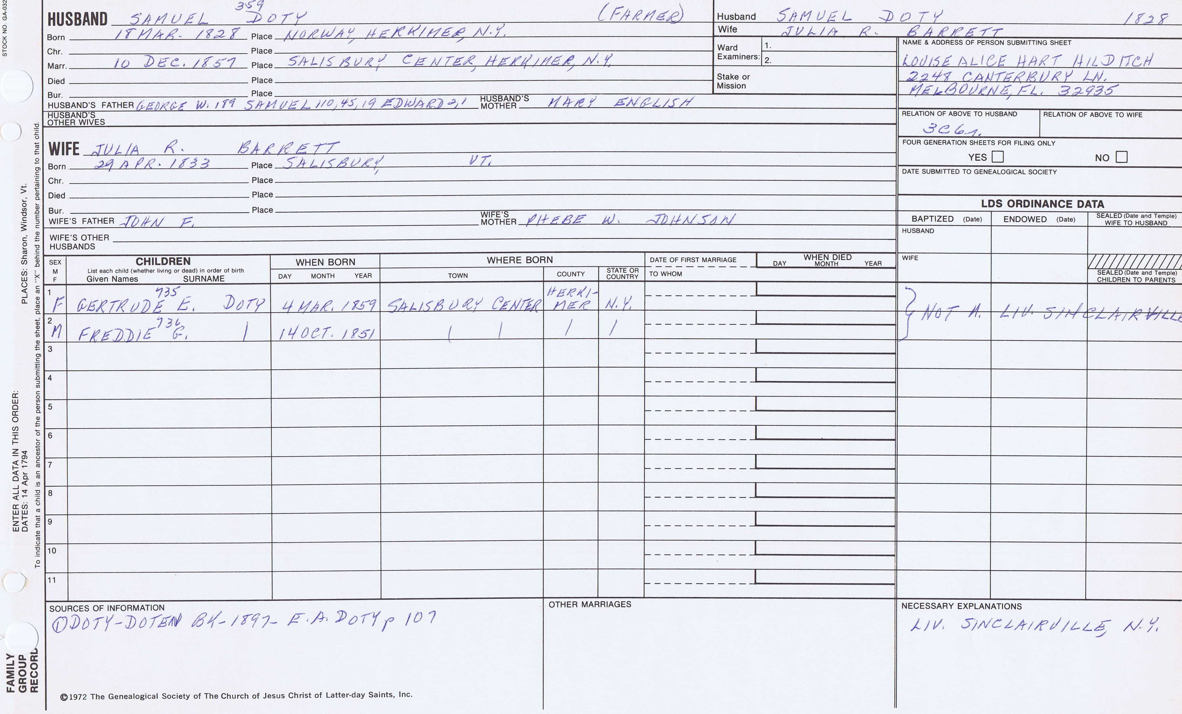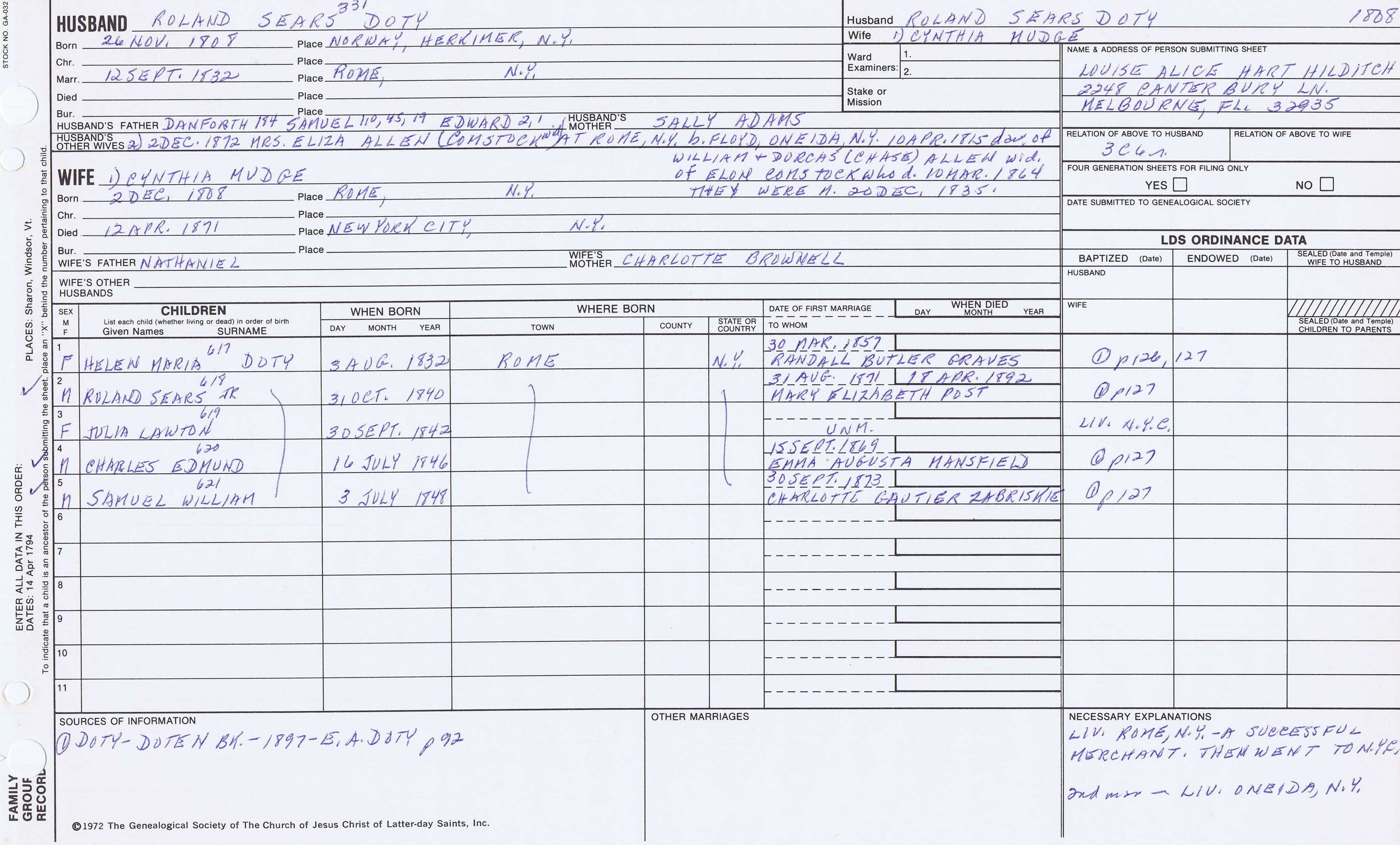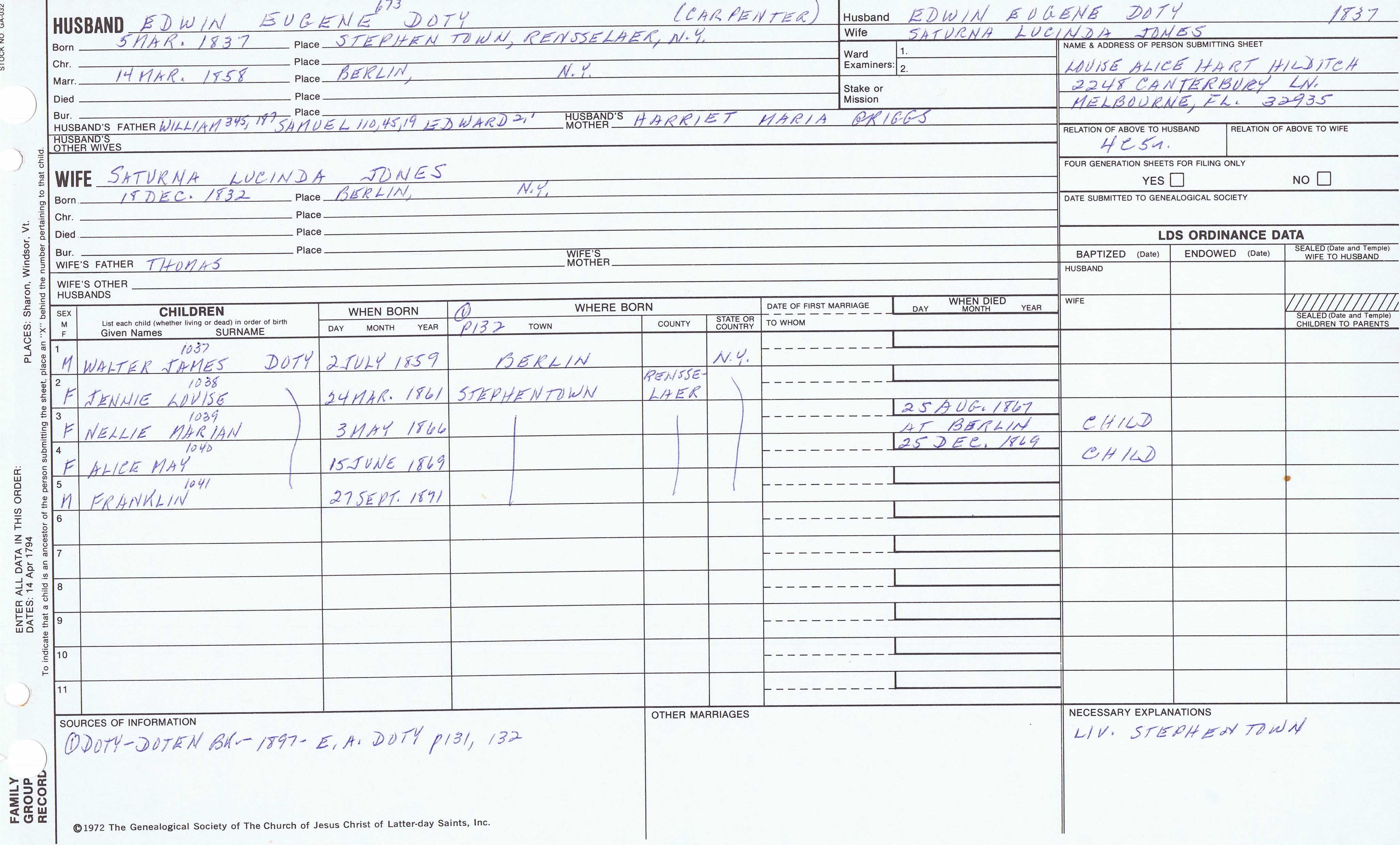 Seth Newell Doty (1817) back