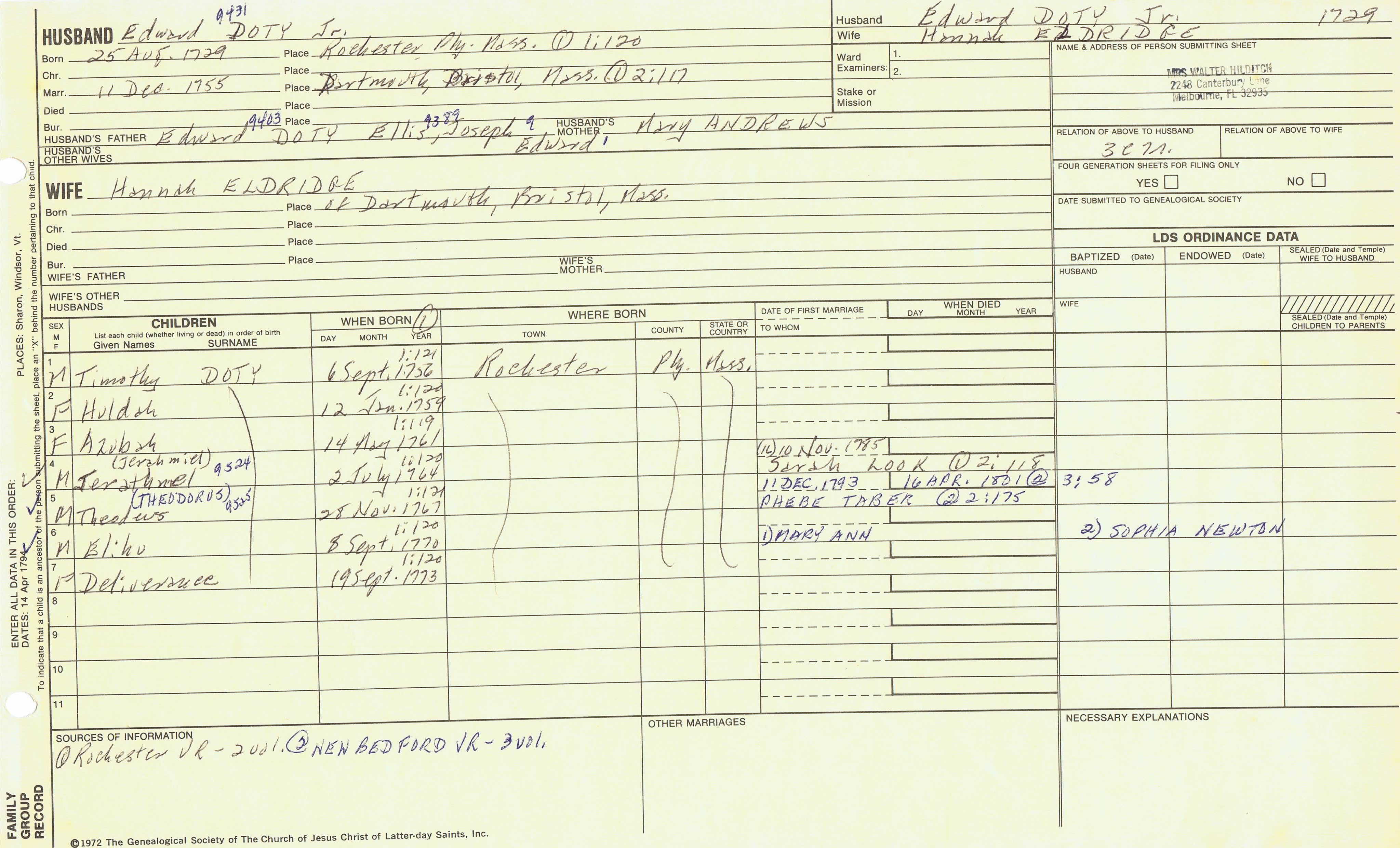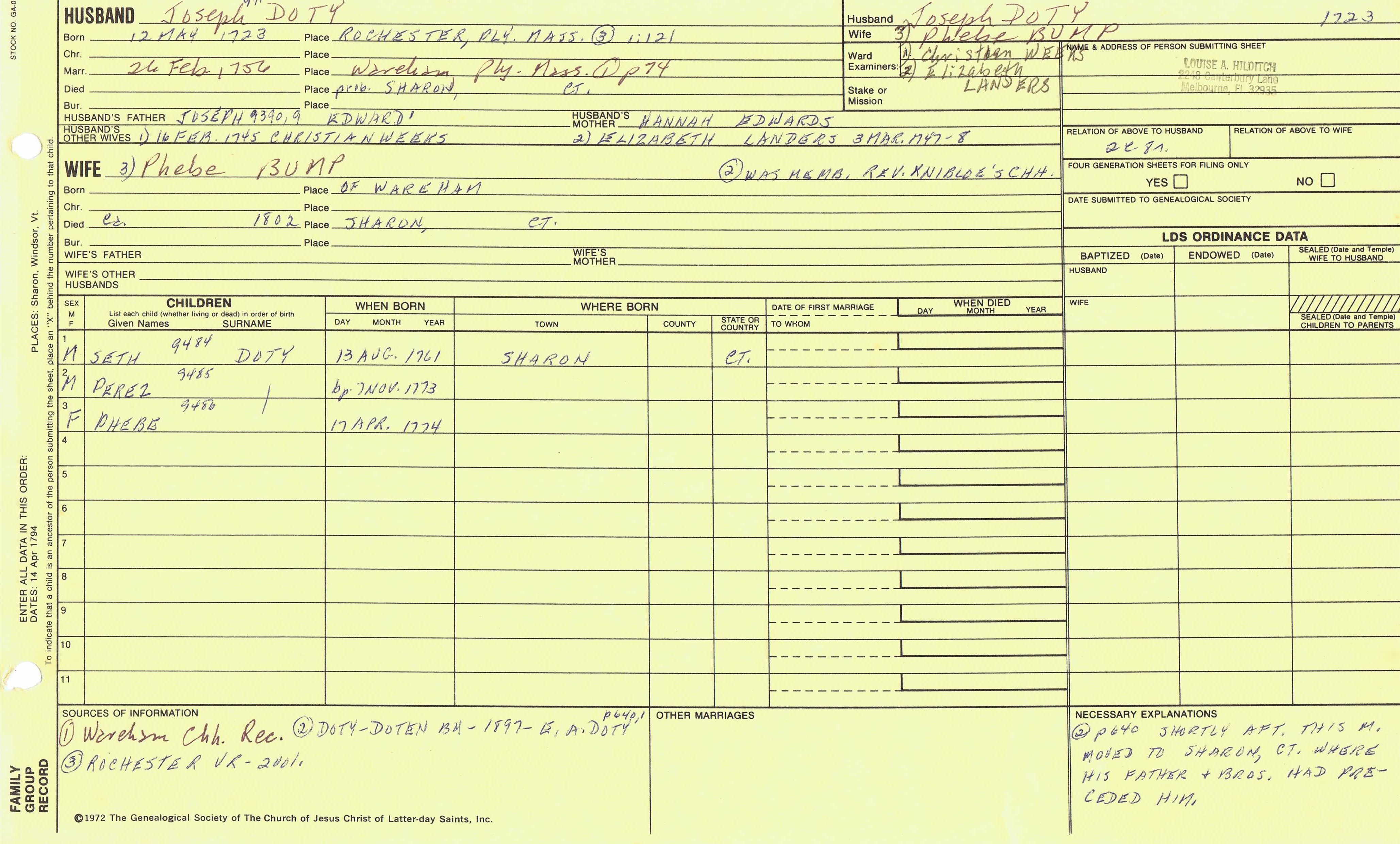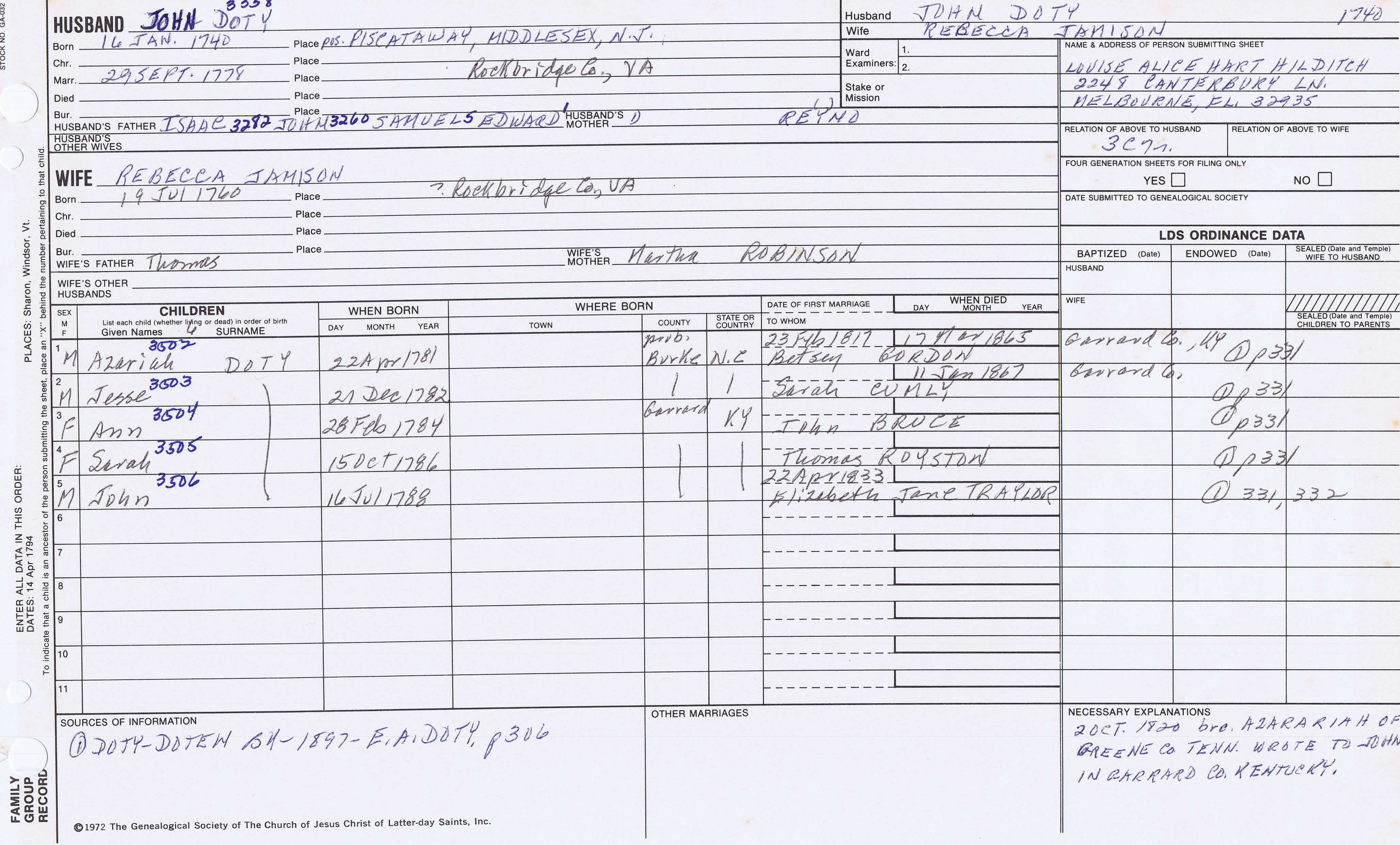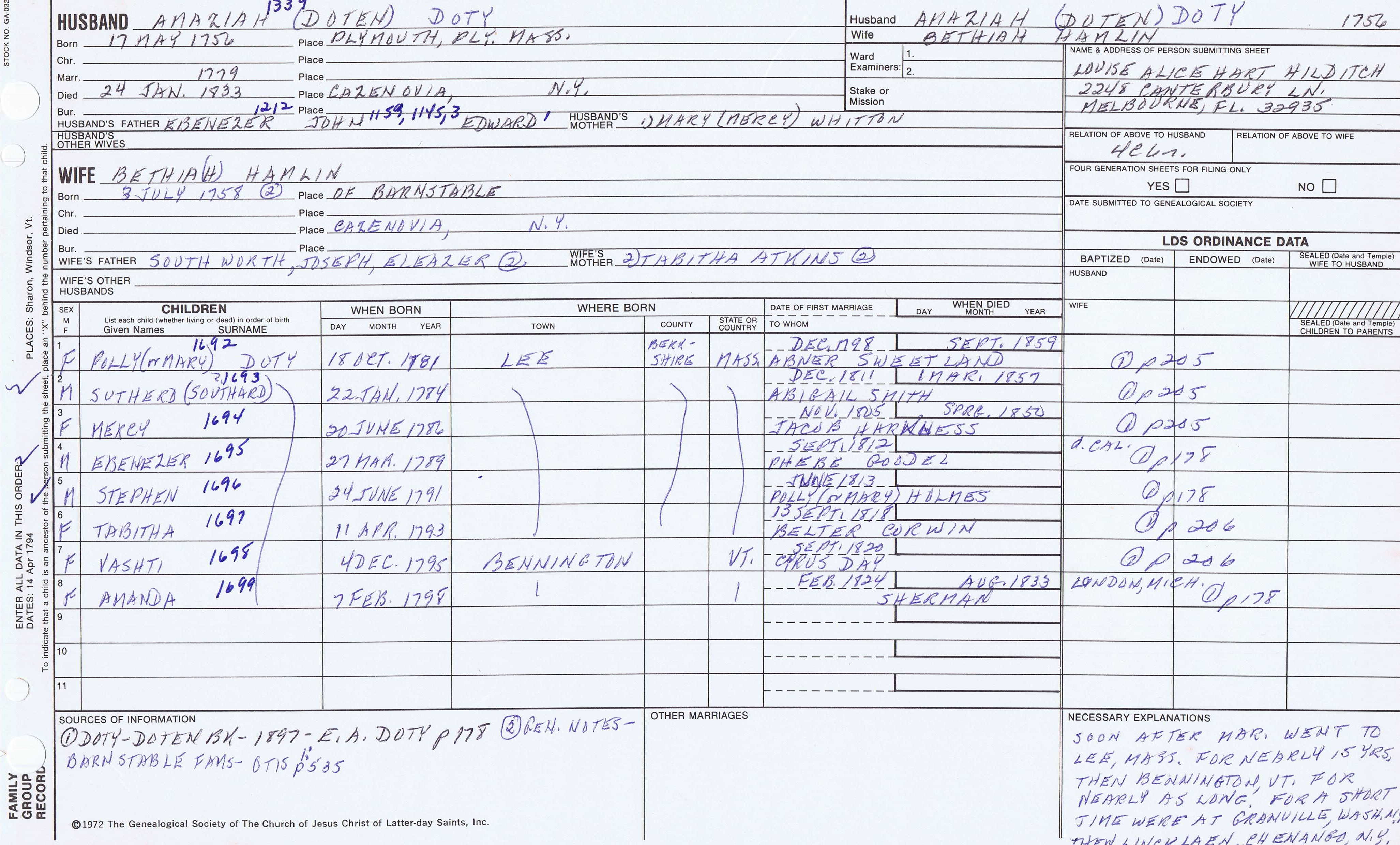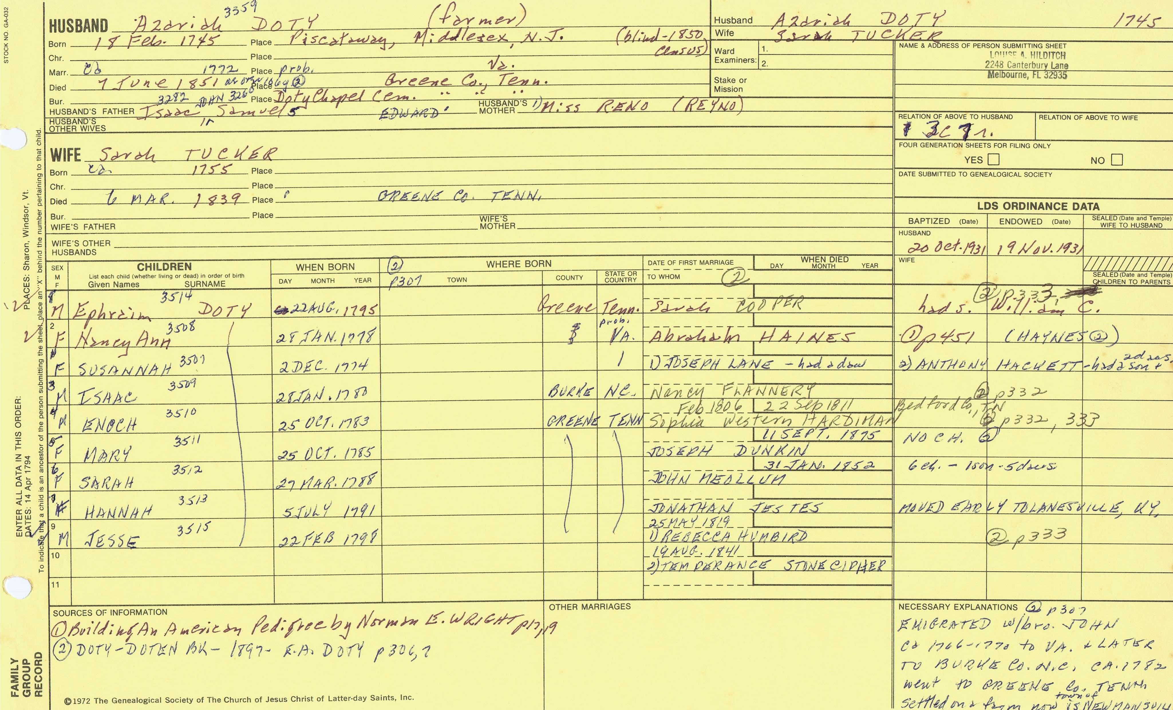 Azariah Doty (1731) back