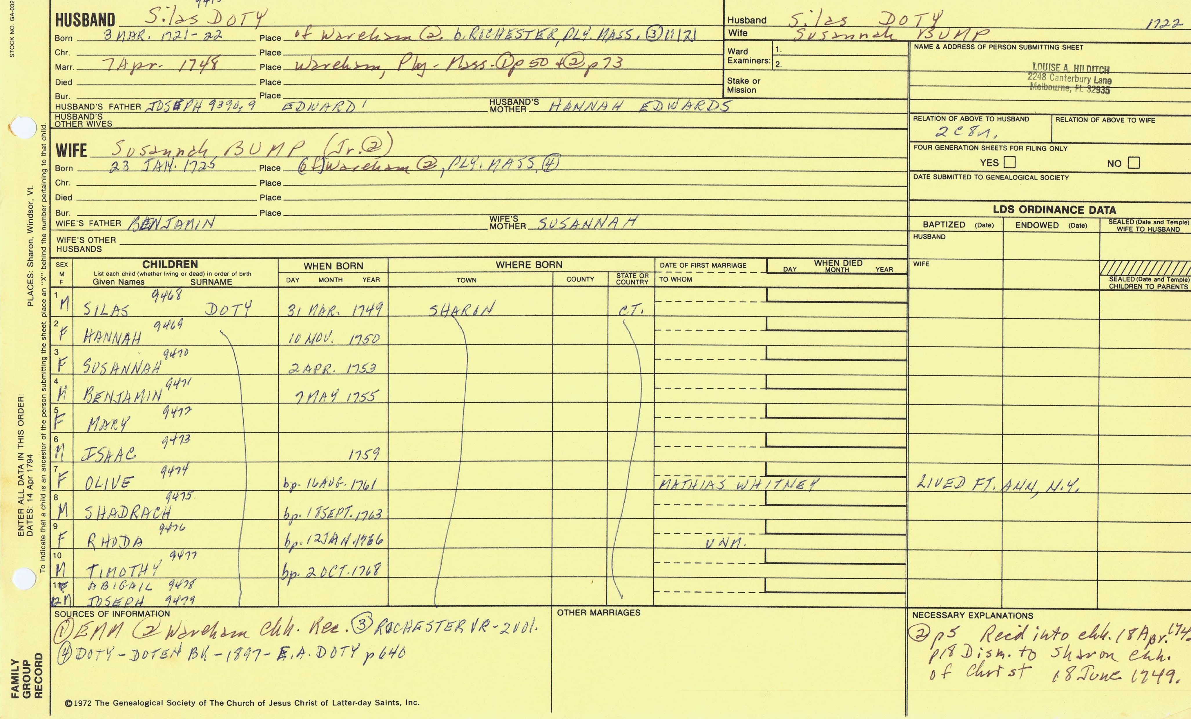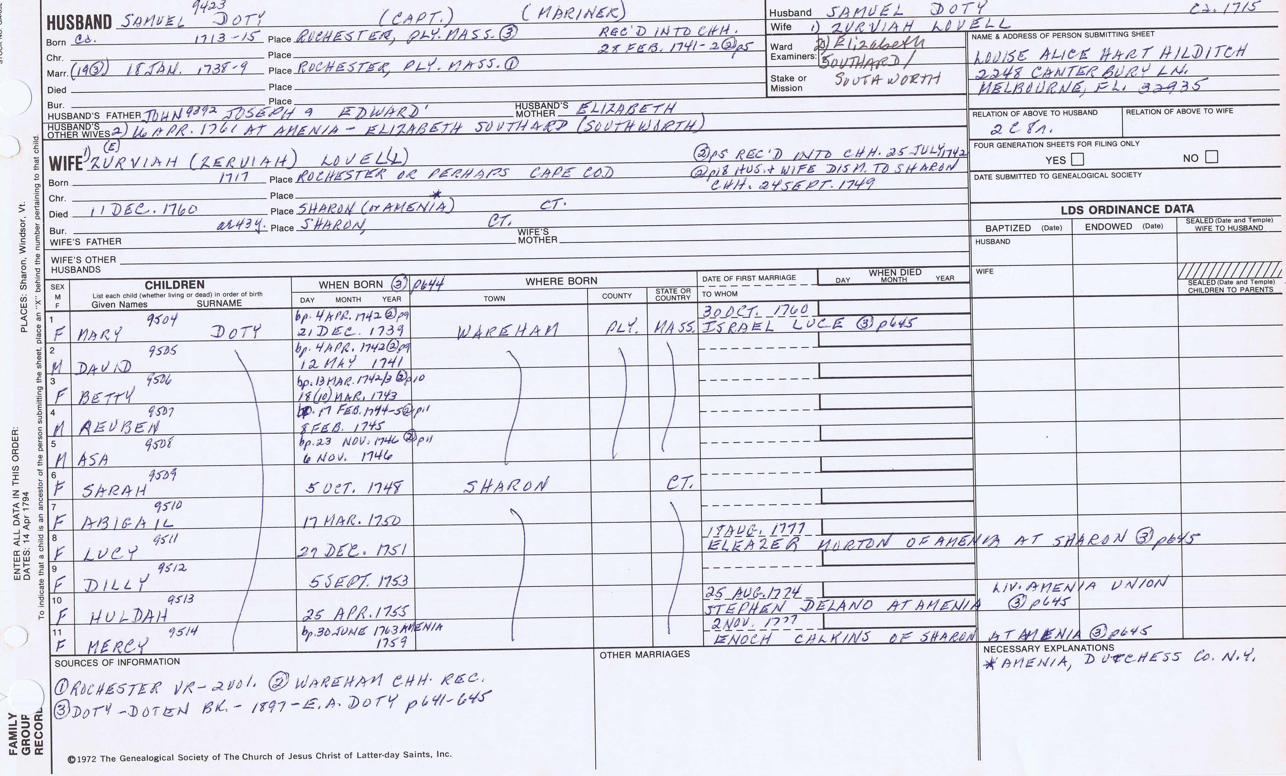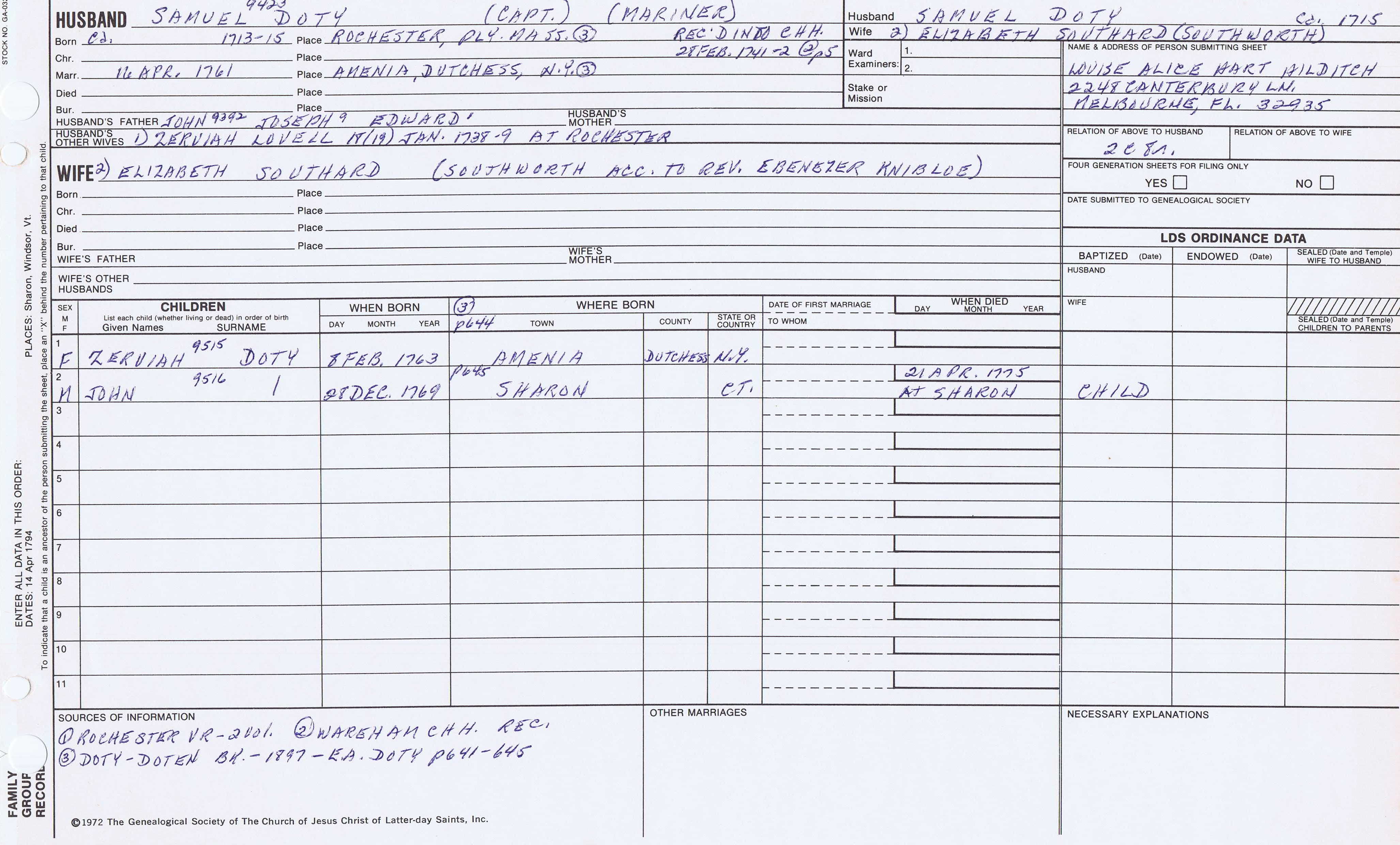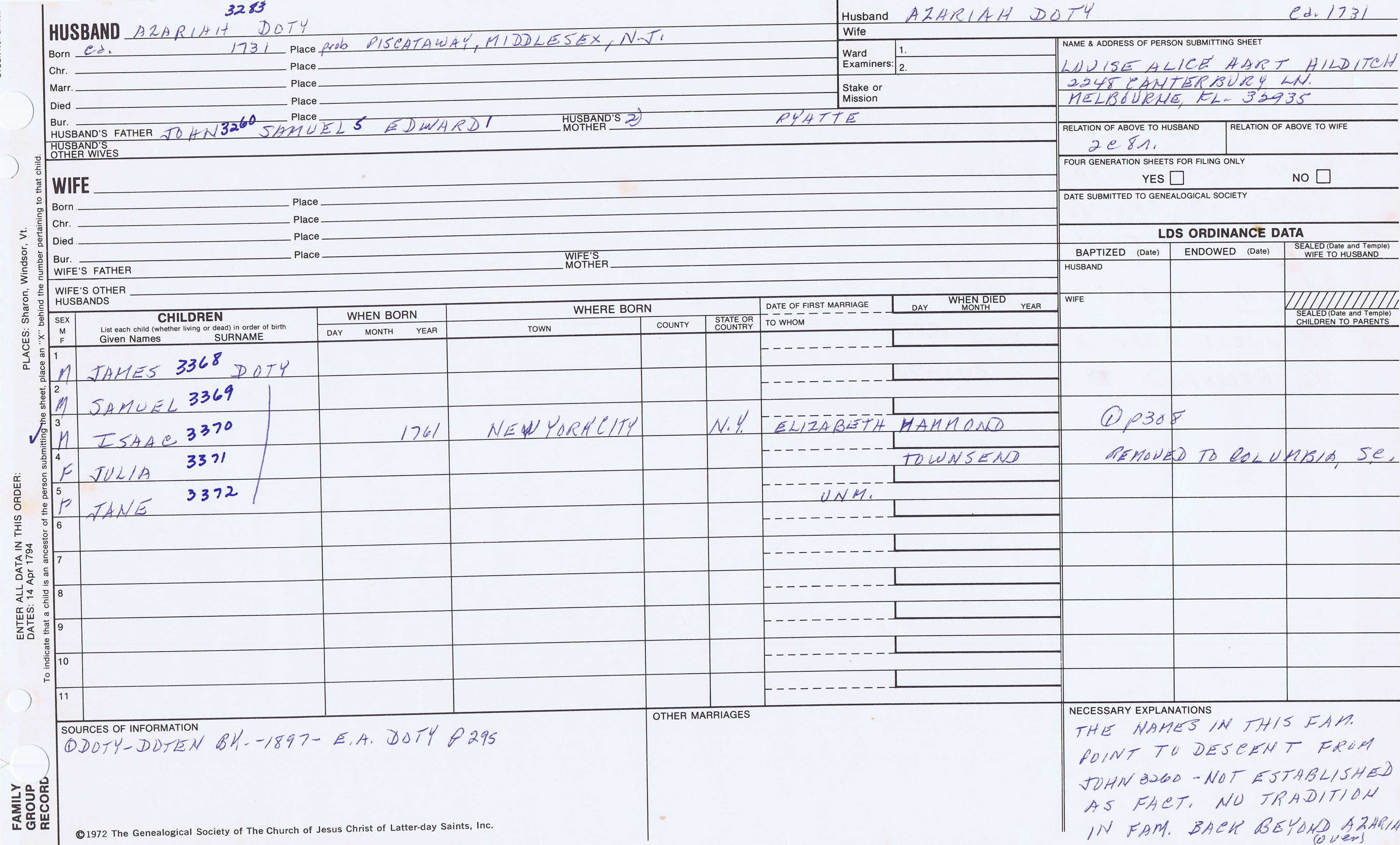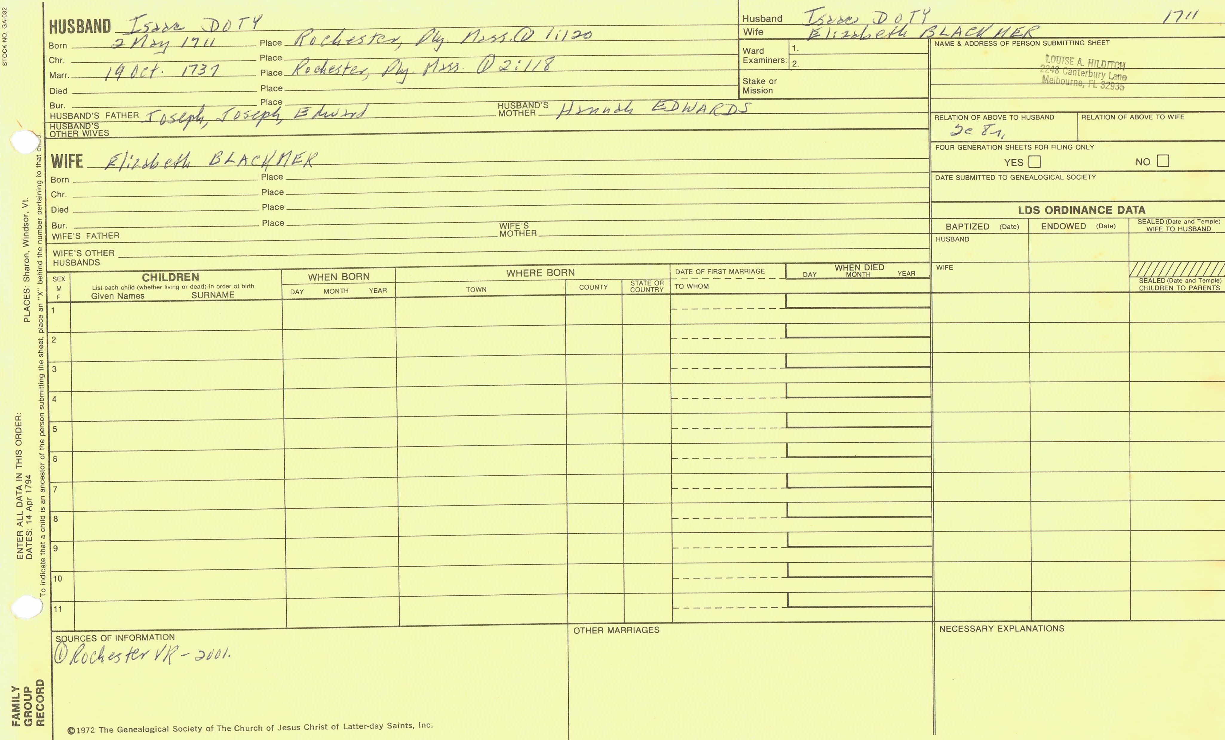 Azariah Doty (1731) back