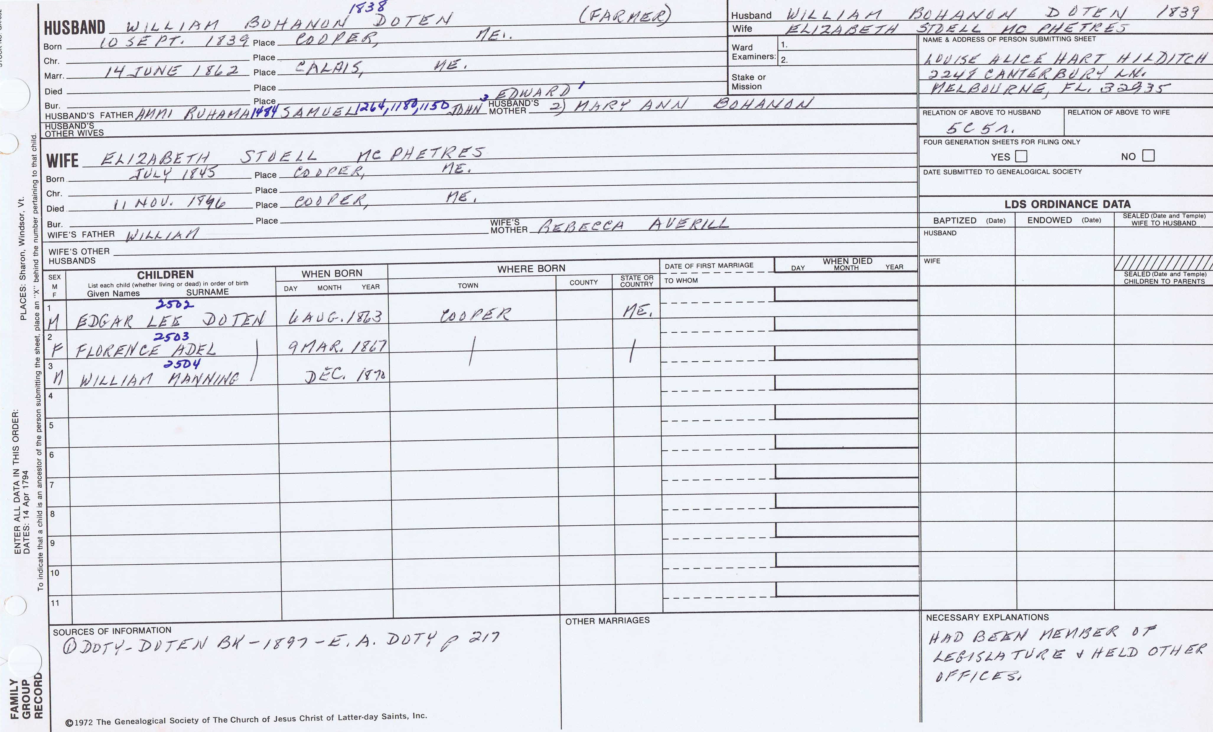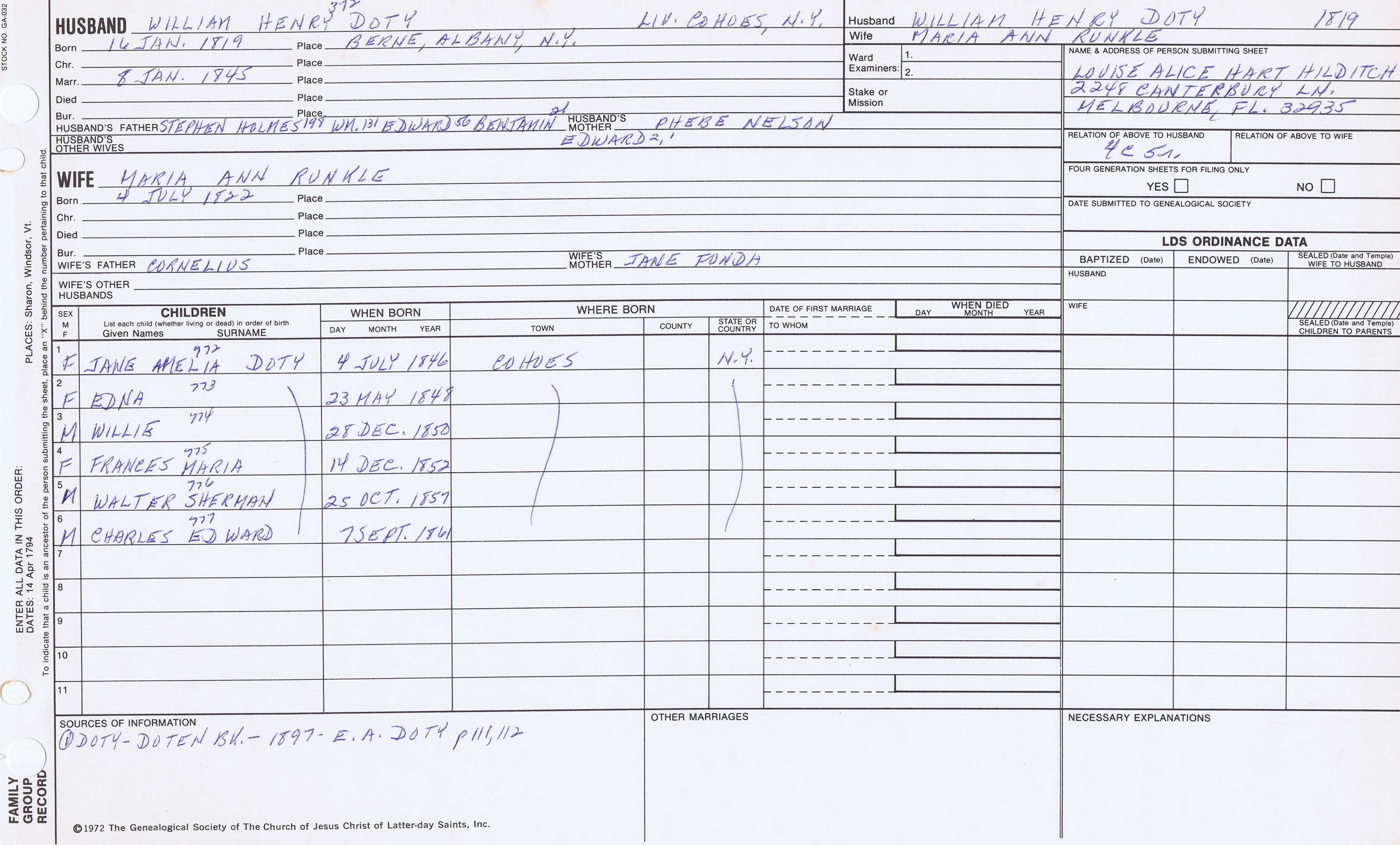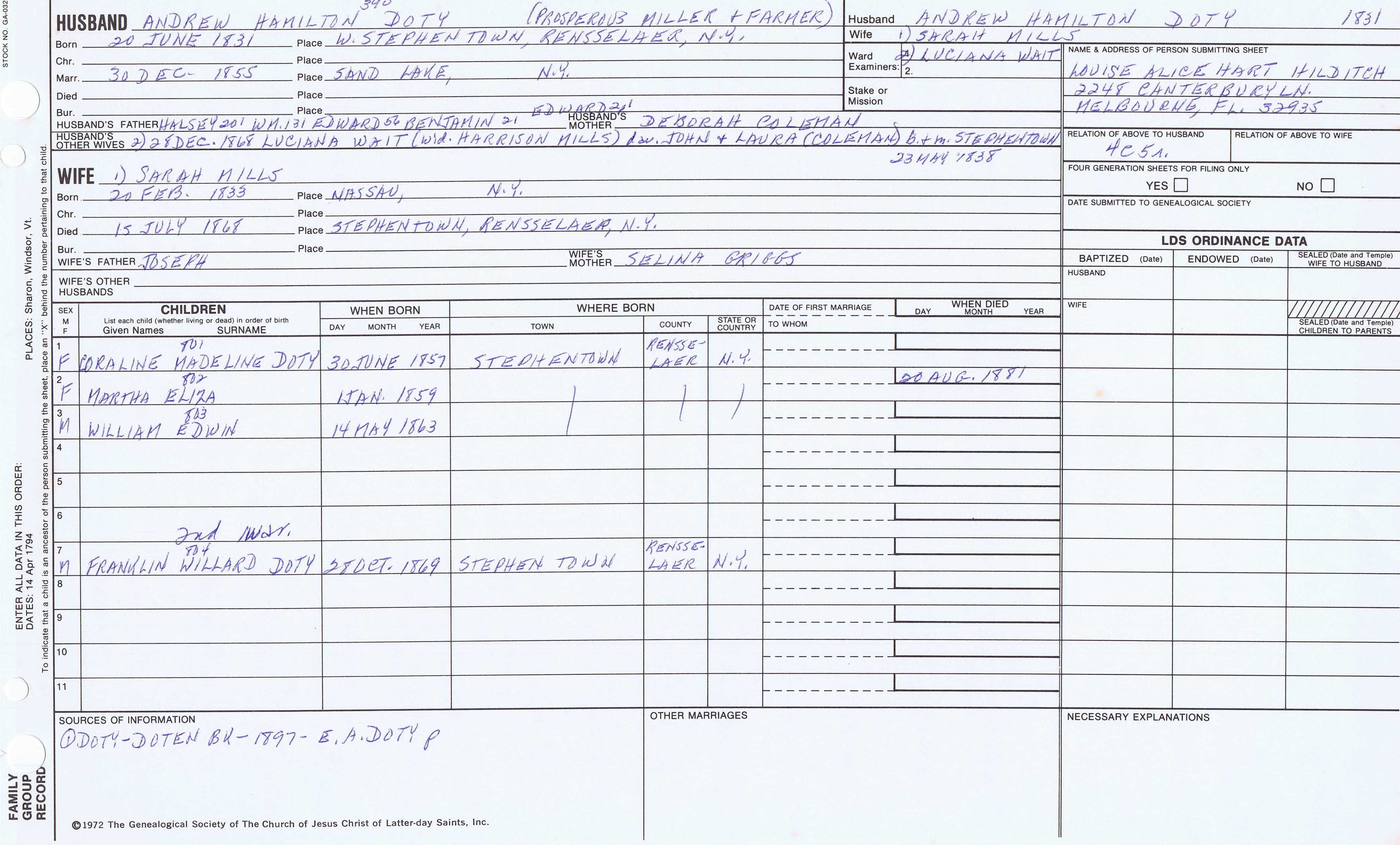 William Doty (1825) back