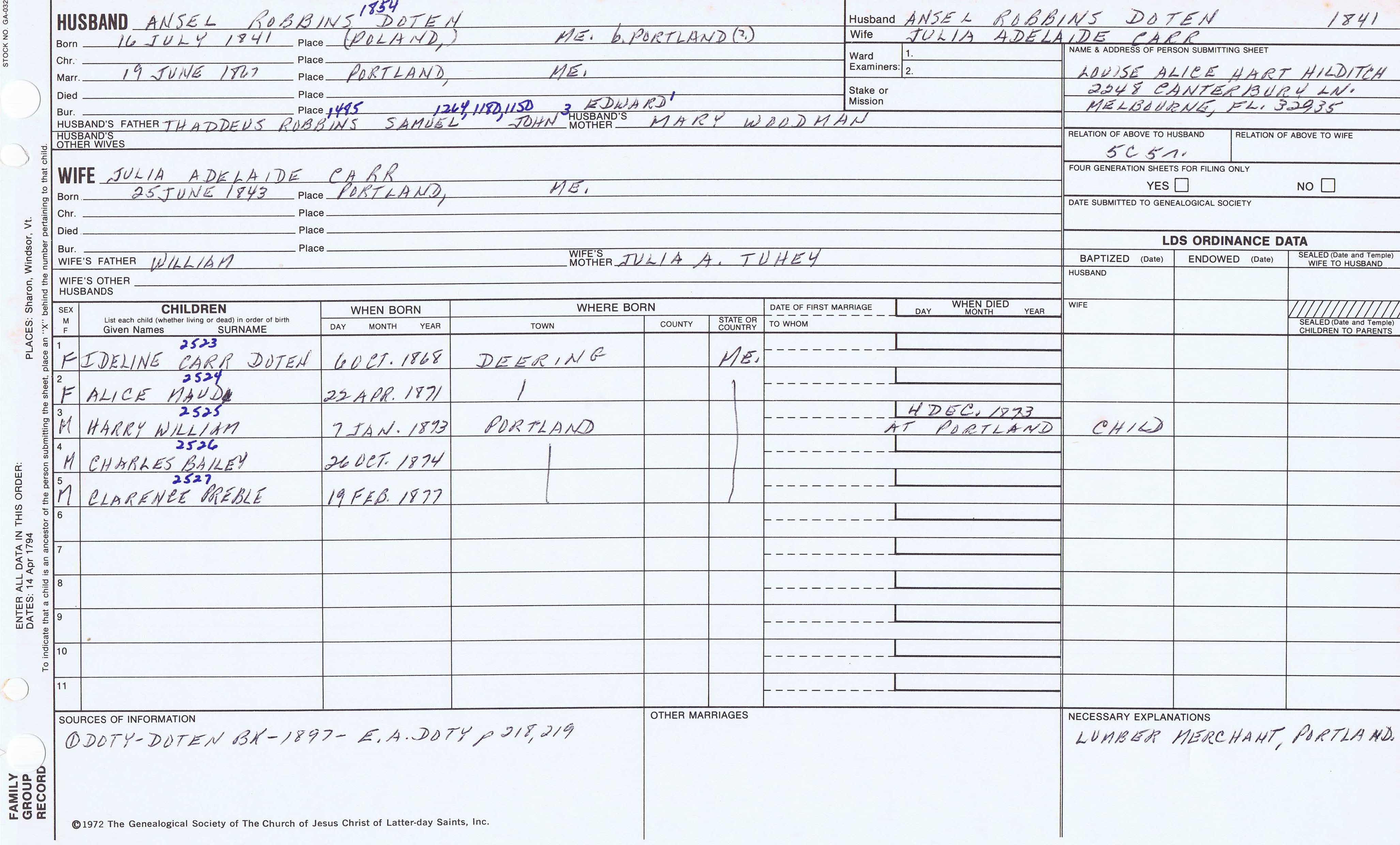 Thaddeus Robbins Doten (1847)