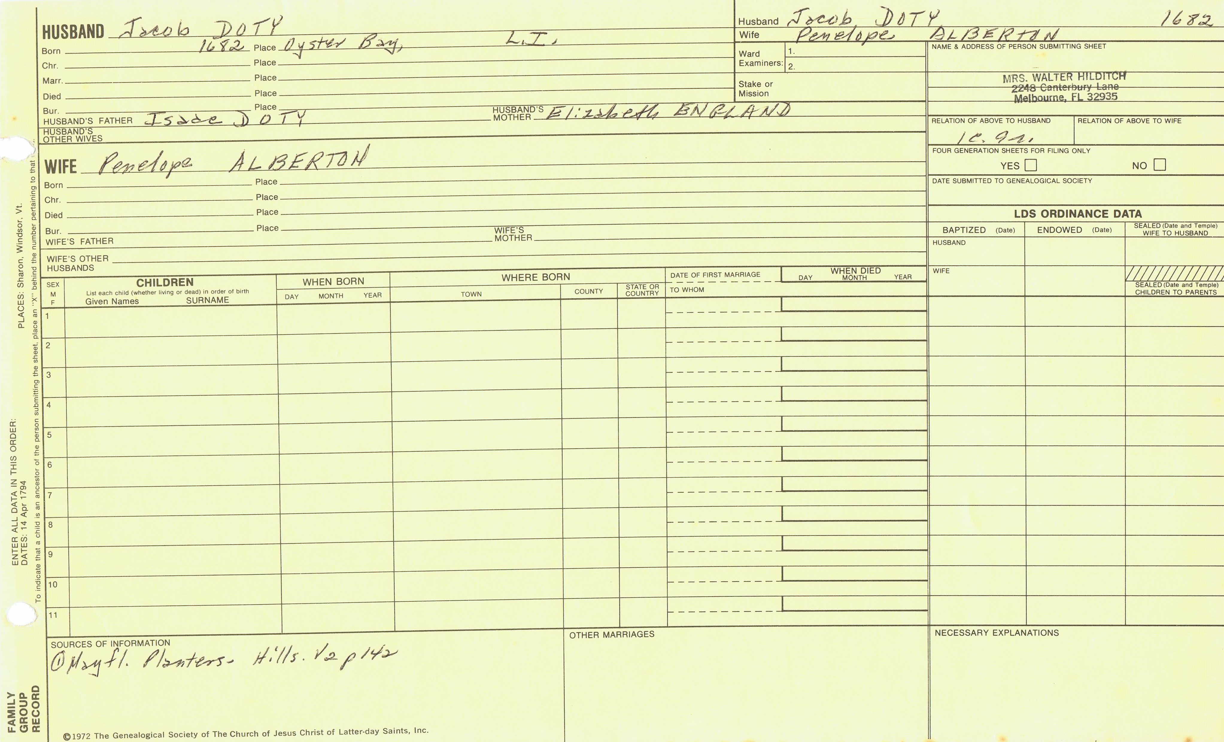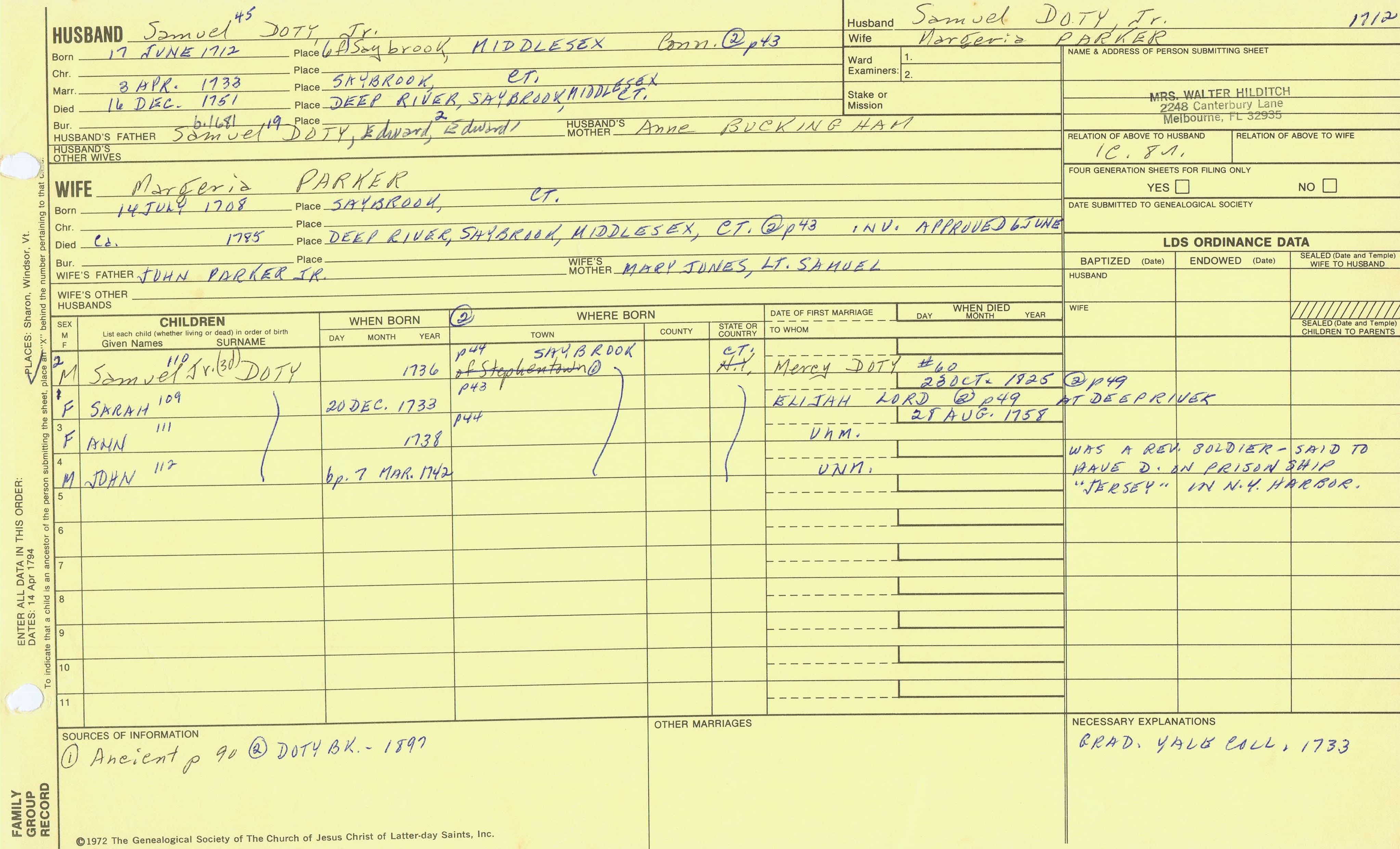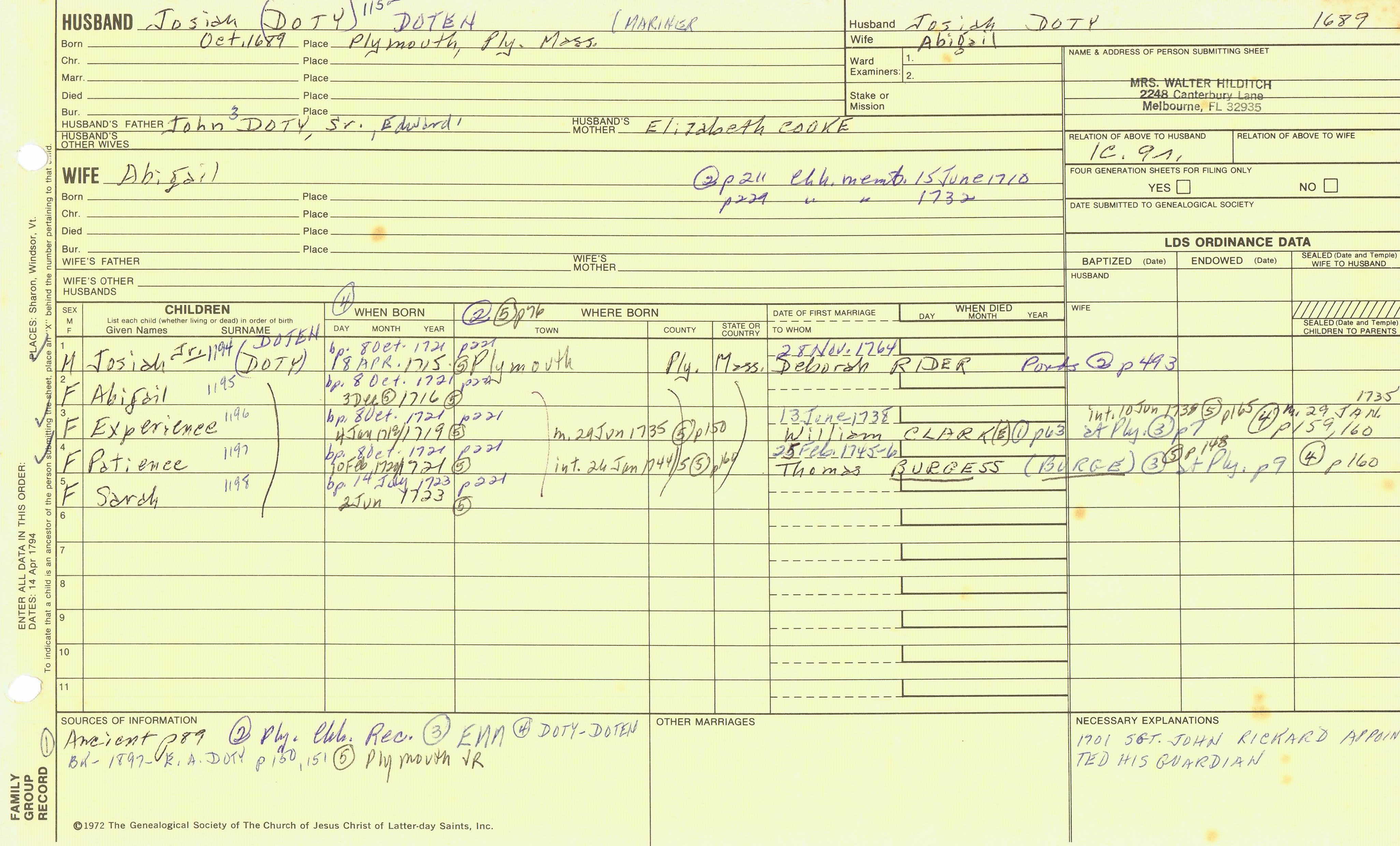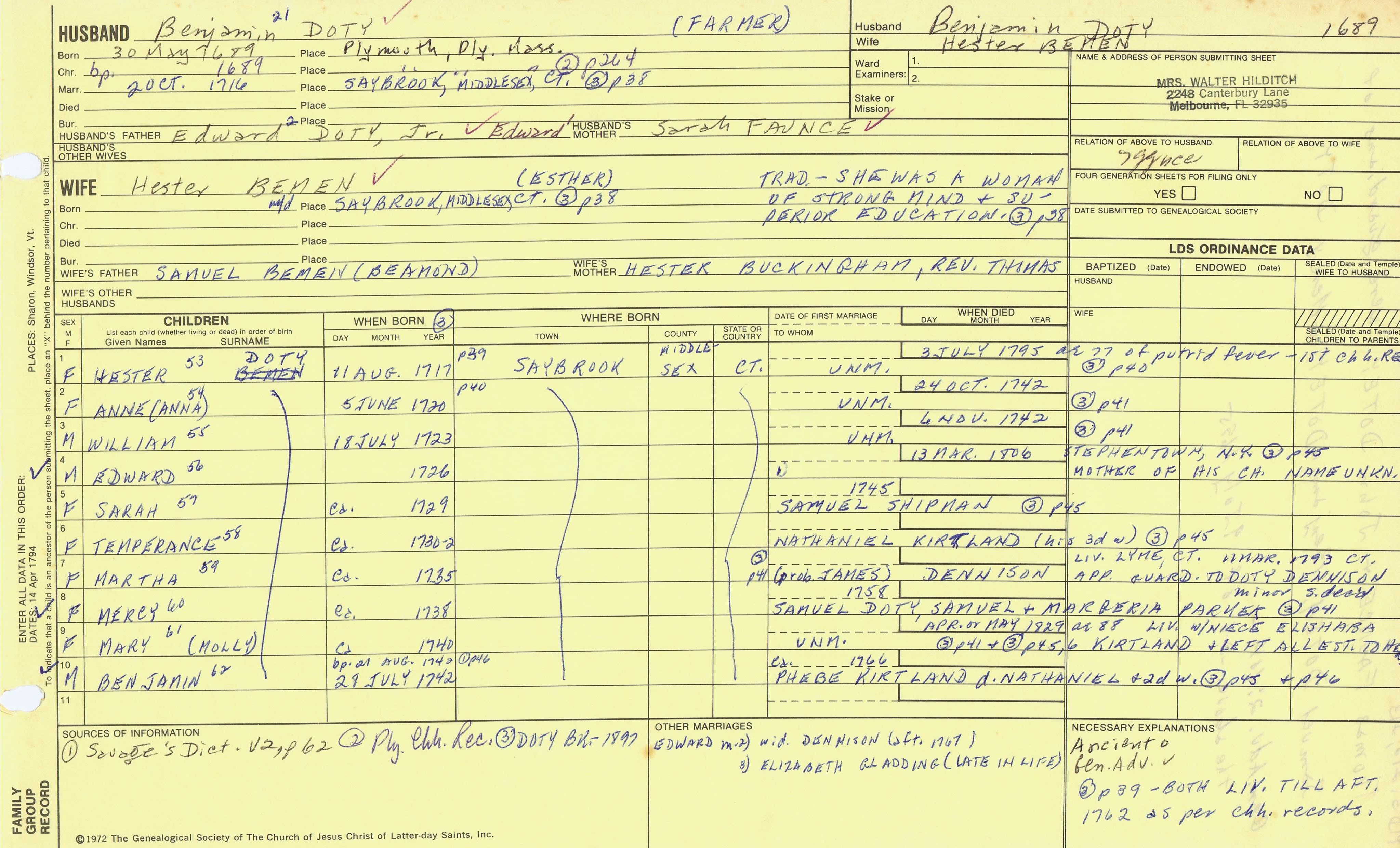William Doty (1719) back
