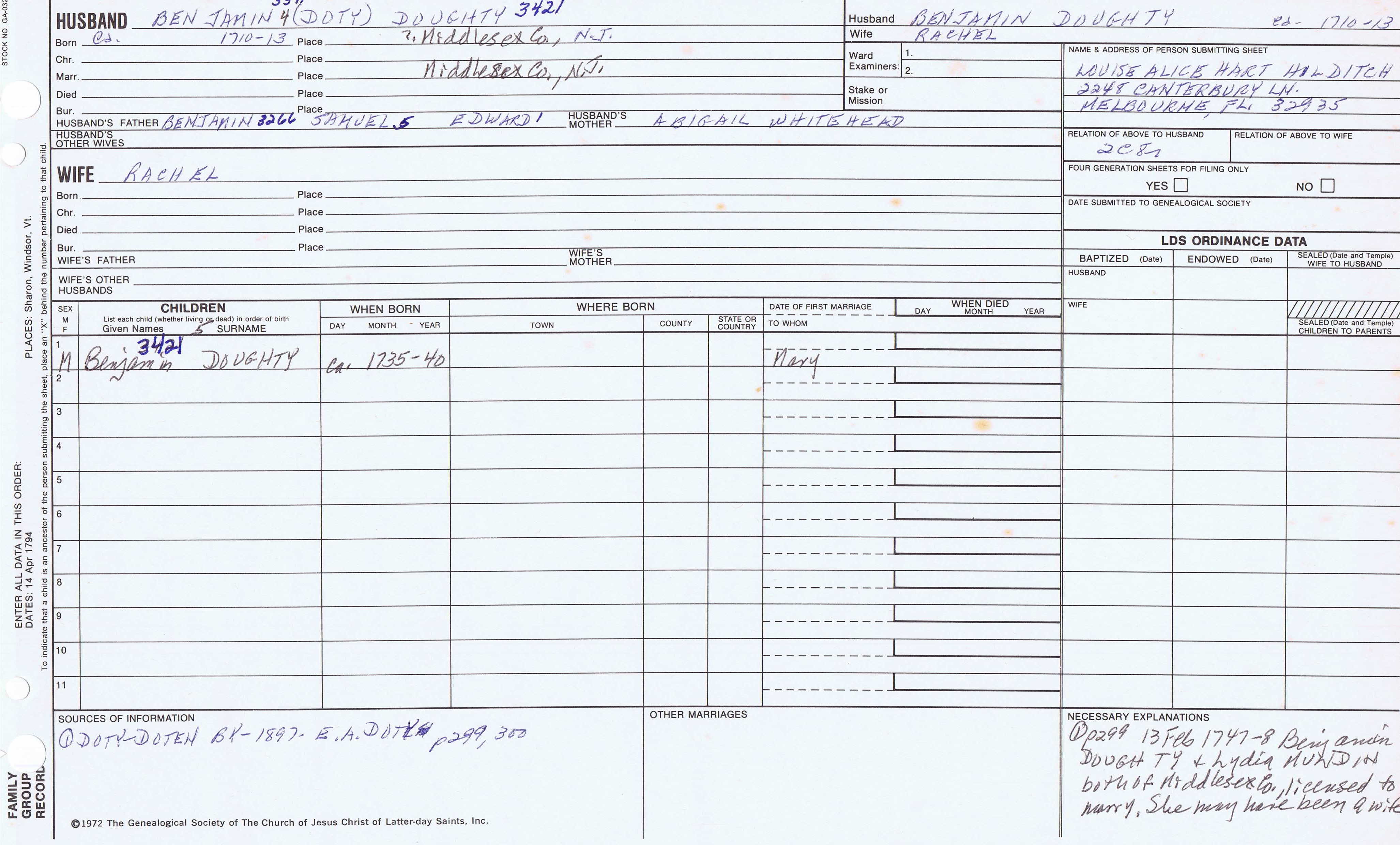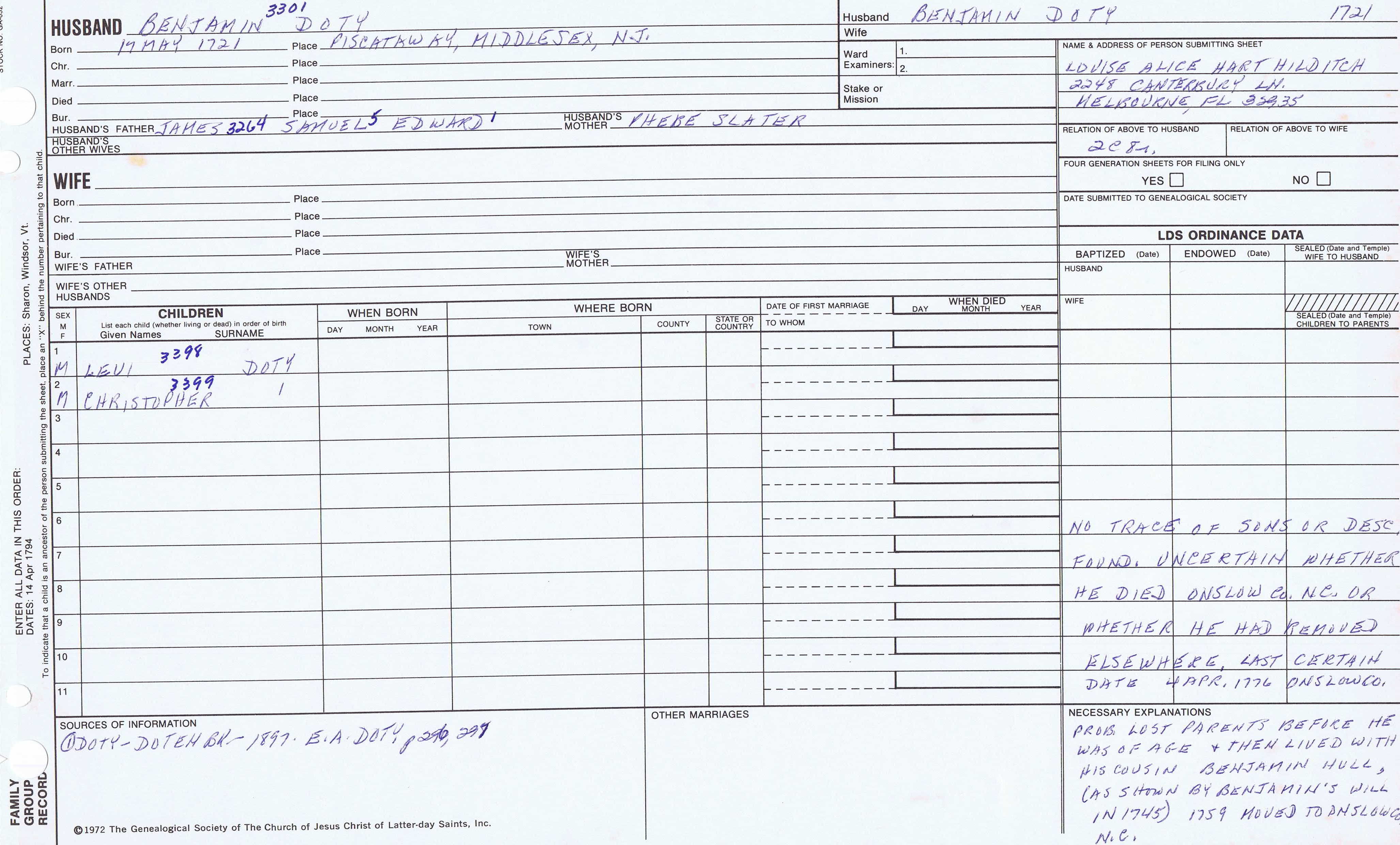 Benjamin Doty (1742) back