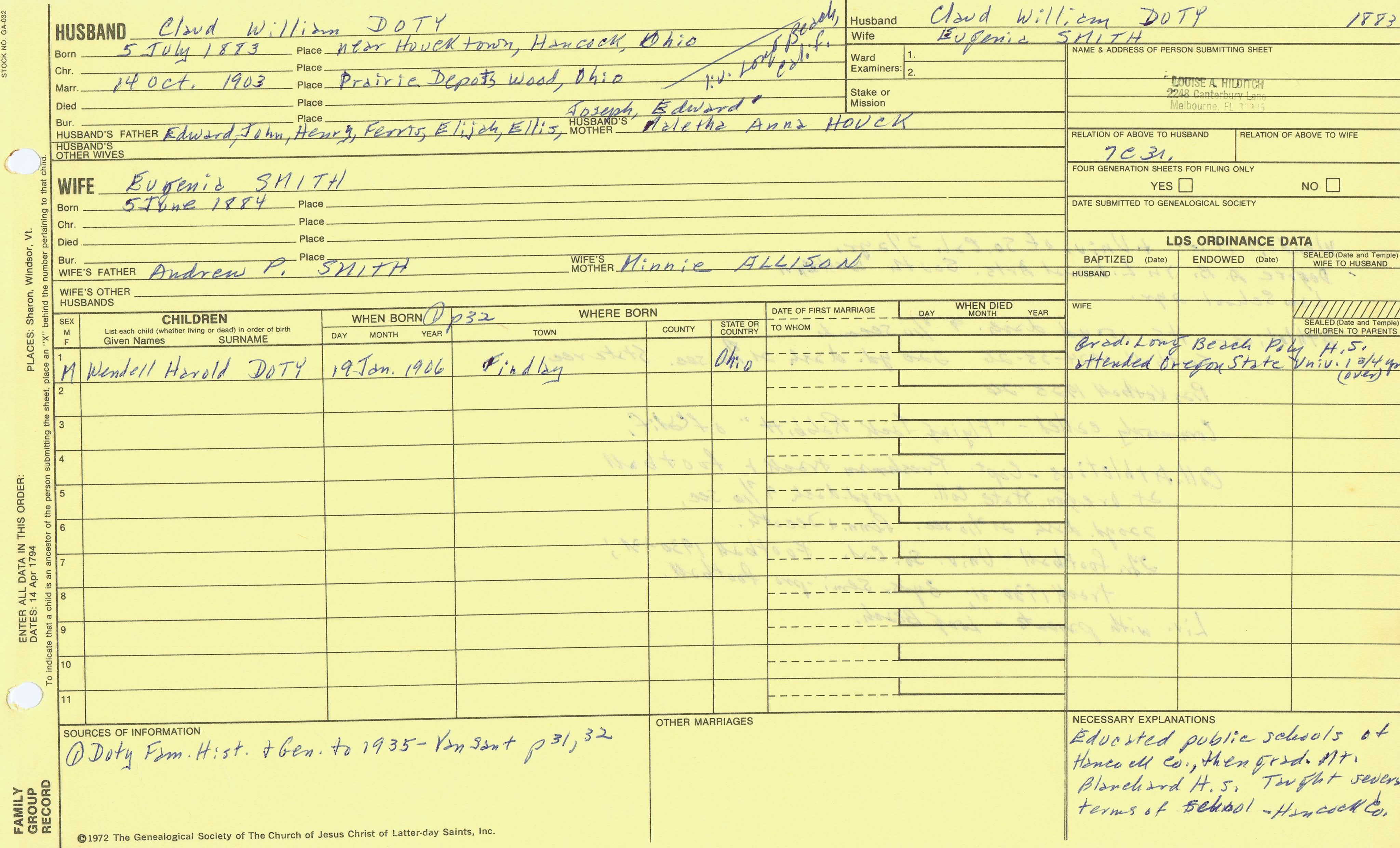Claud William Doty (1883) back