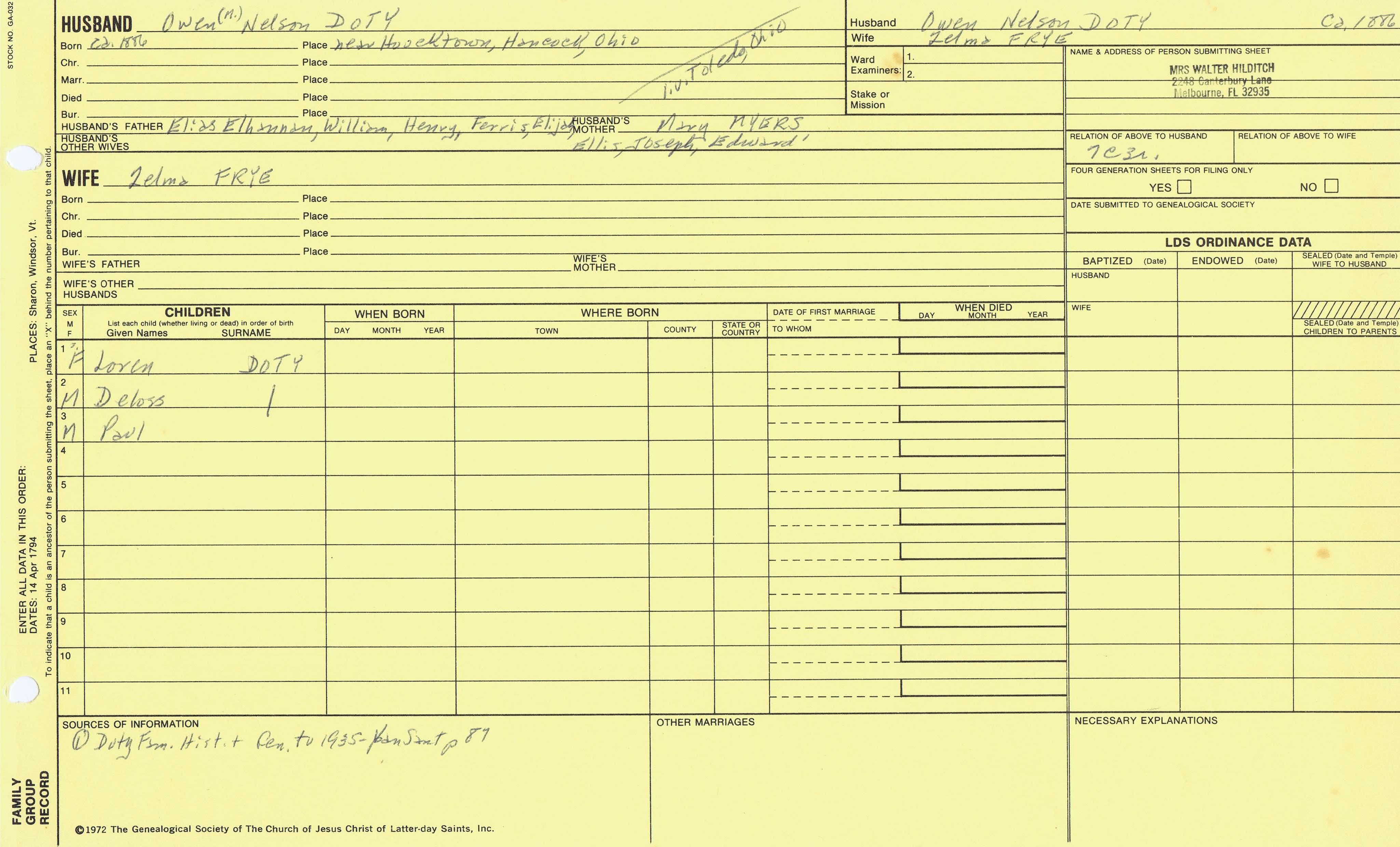 Danforth Doty (1767) back